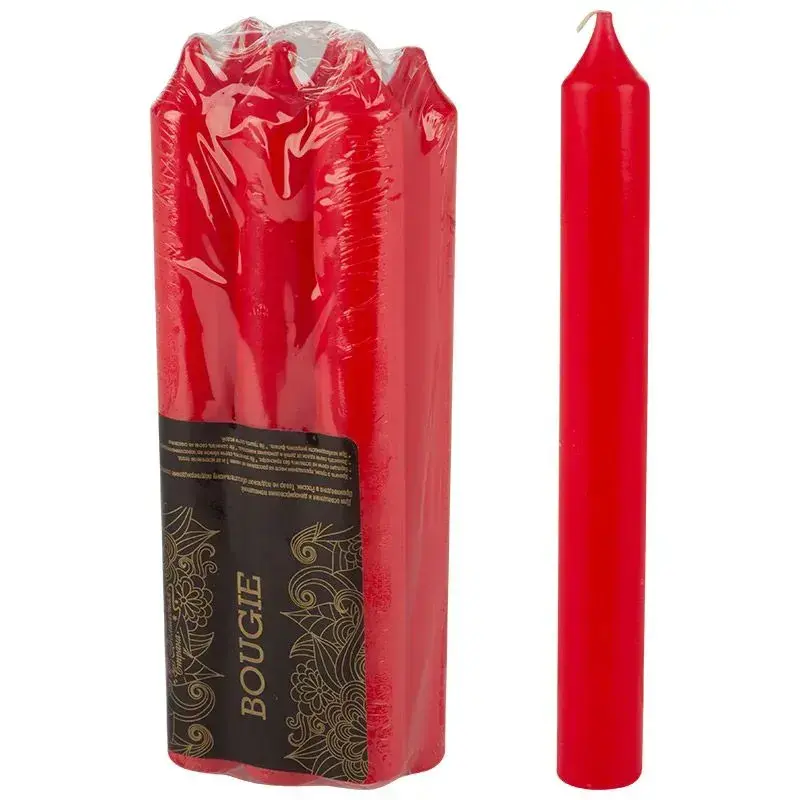 Набор из 6 классических красных свечей создаст уютное освещение для романтических вечеров, семейных ужинов или праздничного декора. Цилиндрическая форма и насыщенный цвет подчеркнут эстетику вашего интерьера.
