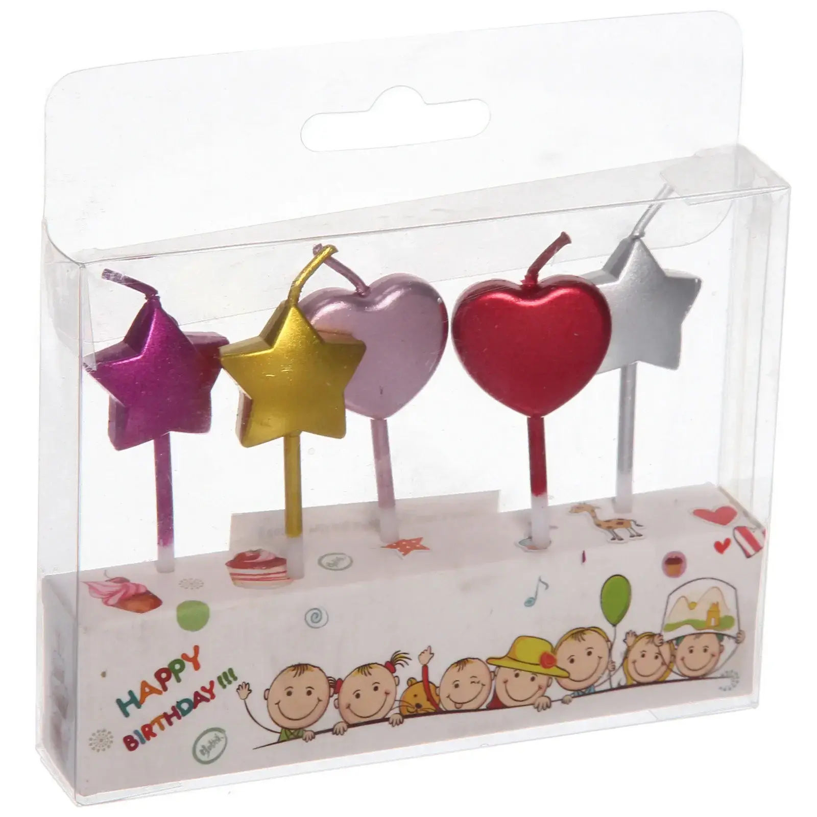 Праздничные свечи – это не просто аксессуар, а важный элемент любого торжества. Набор из 5 свечей в форме звезд и сердец поможет создать особенную атмосферу и запечатлеть самые трогательные моменты.