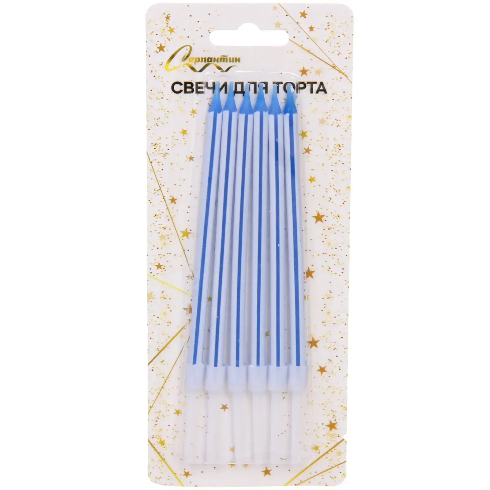 Почему стоит выбрать именно эти свечи? Во-первых, они изготовлены из качественного парафина, что обеспечивает их долговечность и безопасность при использовании. Во-вторых, синий цвет с белыми полосами и золотыми звездами на упаковке создаёт эффектный визуальный акцент, который привлечёт внимание ваших гостей. Кроме того, в упаковке содержится 6 свечей, что позволяет вам украсить несколько десертов или использовать их на разных праздниках.