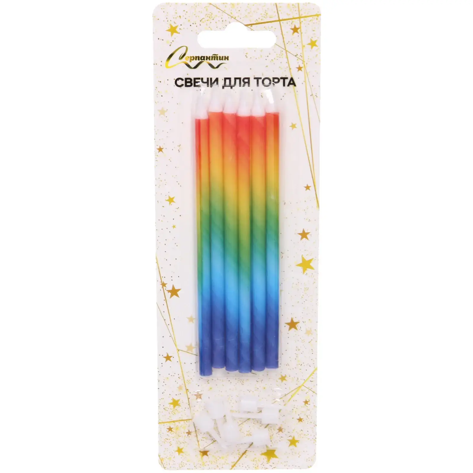Свеча для торта, градиент радужный цвет, парафин, закрученный дизайн, 1 штука, подставка в комплекте