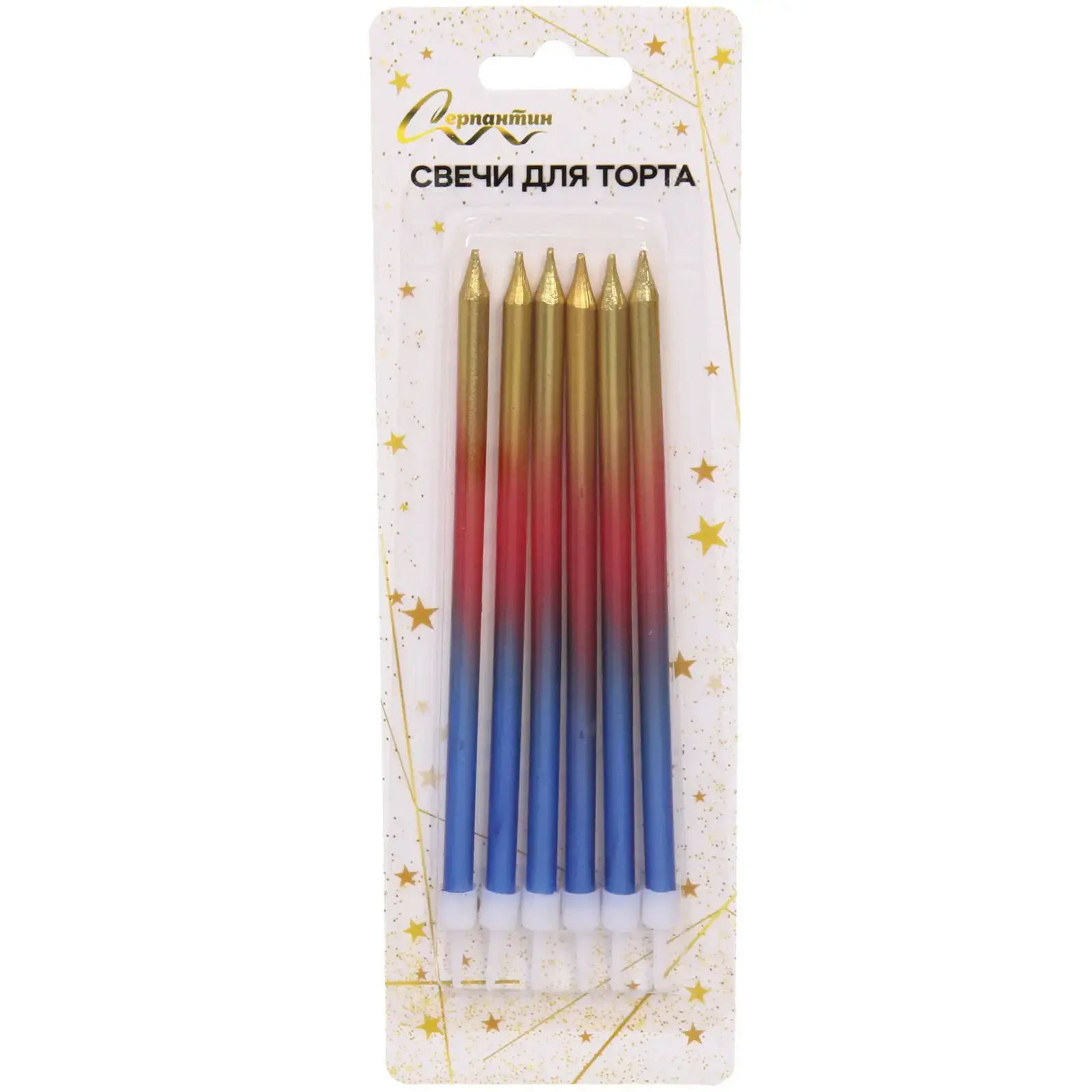 Свечи для торта «Сияние» — это идеальный способ добавить яркие акценты к вашему празднику. Эти свечи не только красиво выглядят, но и создают атмосферу уюта и радости. Их градиентный цвет, переходящий от золотого к красному и синему, привлекает внимание и делает любой торт настоящим произведением искусства.