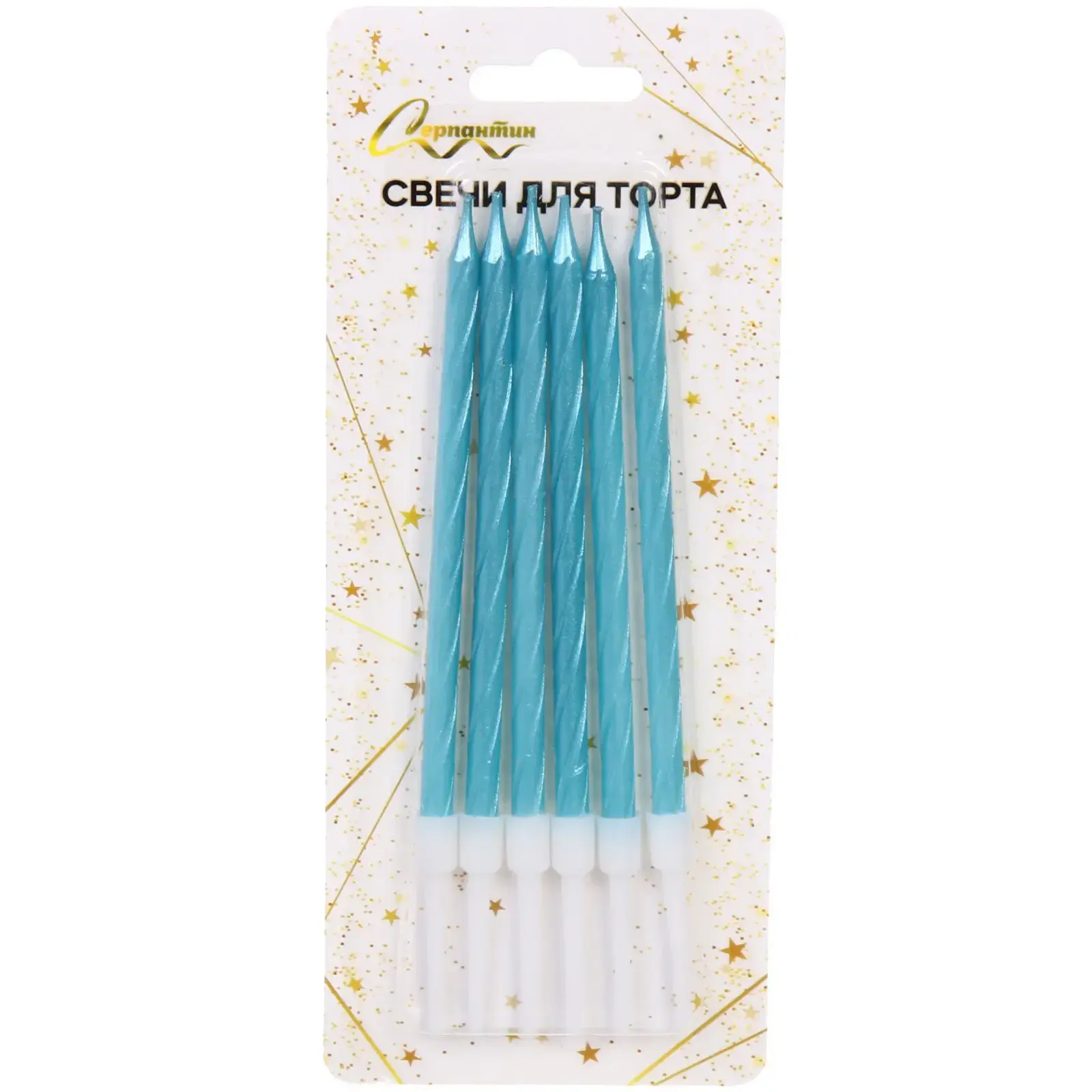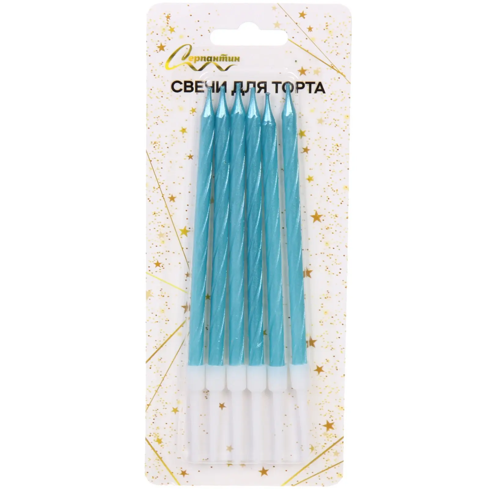 Каждая свеча имеет длину 10,5 см и спиральный дизайн, что делает их не только красивыми, но и удобными в использовании. Белые основания свечей обеспечивают надежную фиксацию в торте. Упаковка украшена золотыми звёздочками, что добавляет праздничного настроения. Эти свечи — отличный выбор для создания незабываемых моментов на вашем празднике!