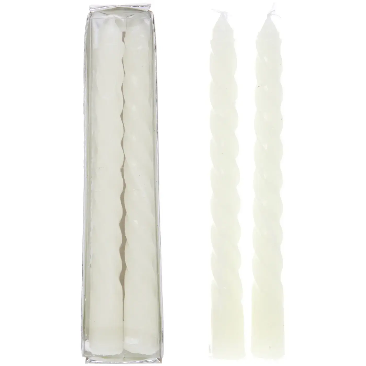 Эти изящные свечи из белого парафина идеально подойдут для создания уютной и праздничной обстановки. Благодаря классической витой форме и гладкой поверхности, они становятся стильным элементом интерьера на любом торжестве или дома.