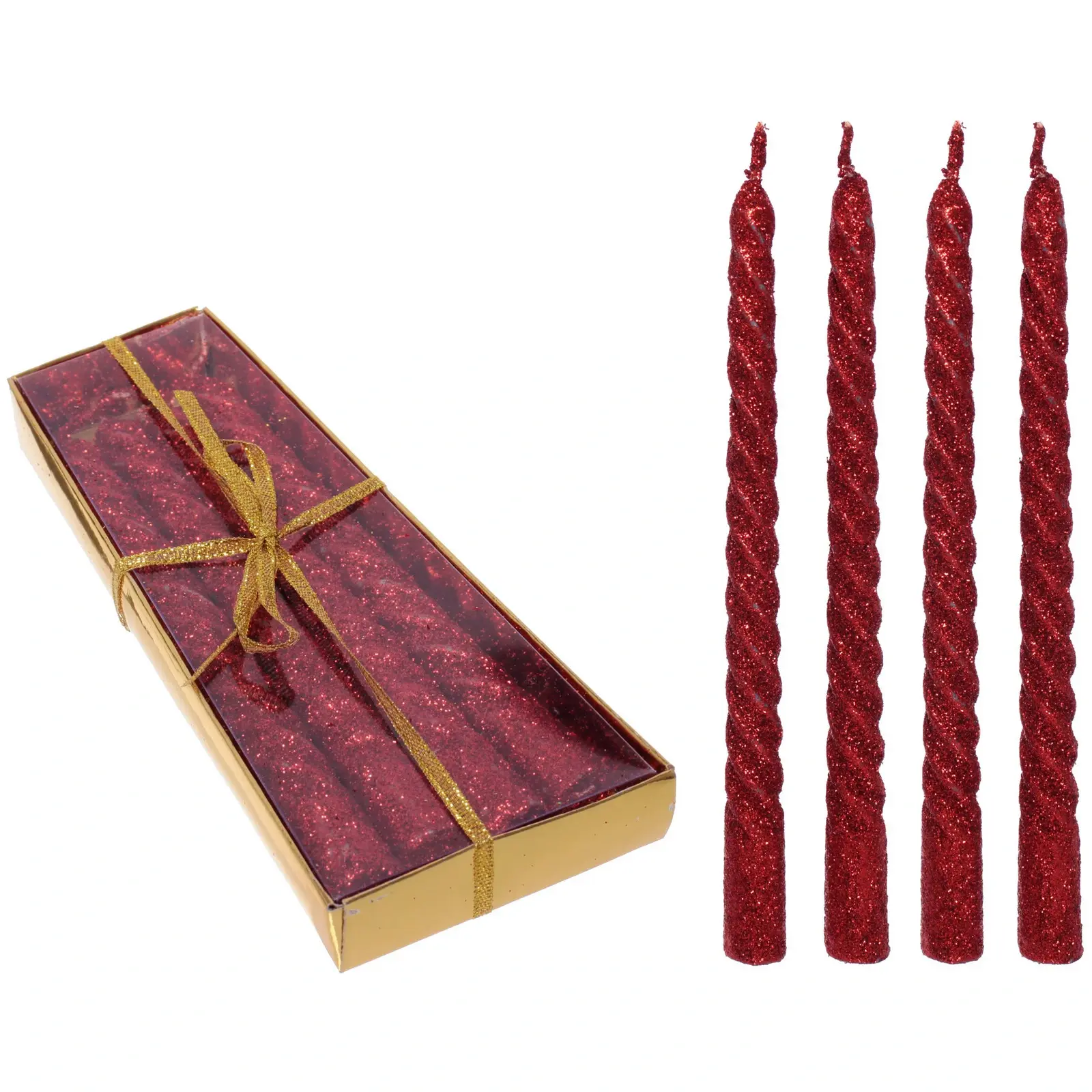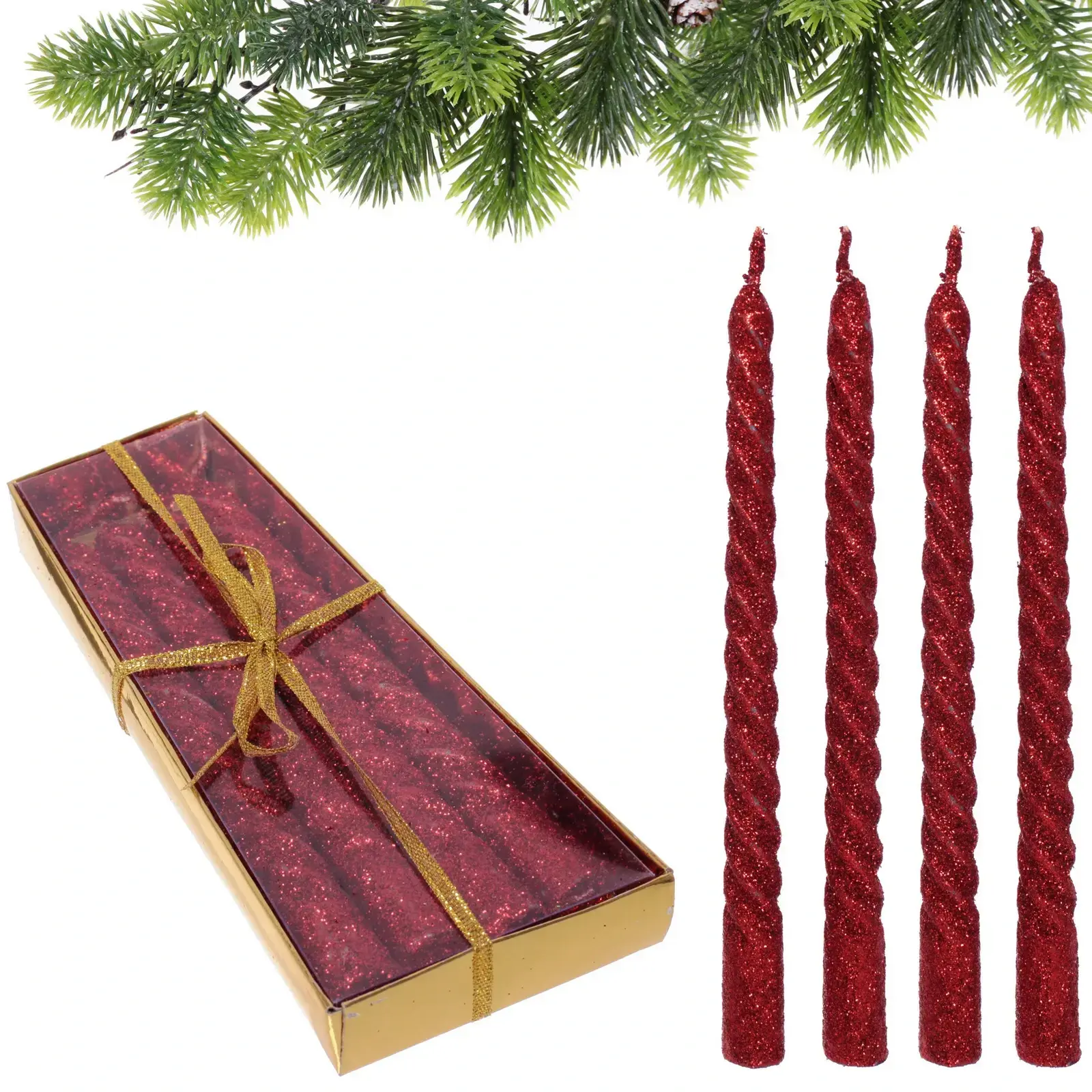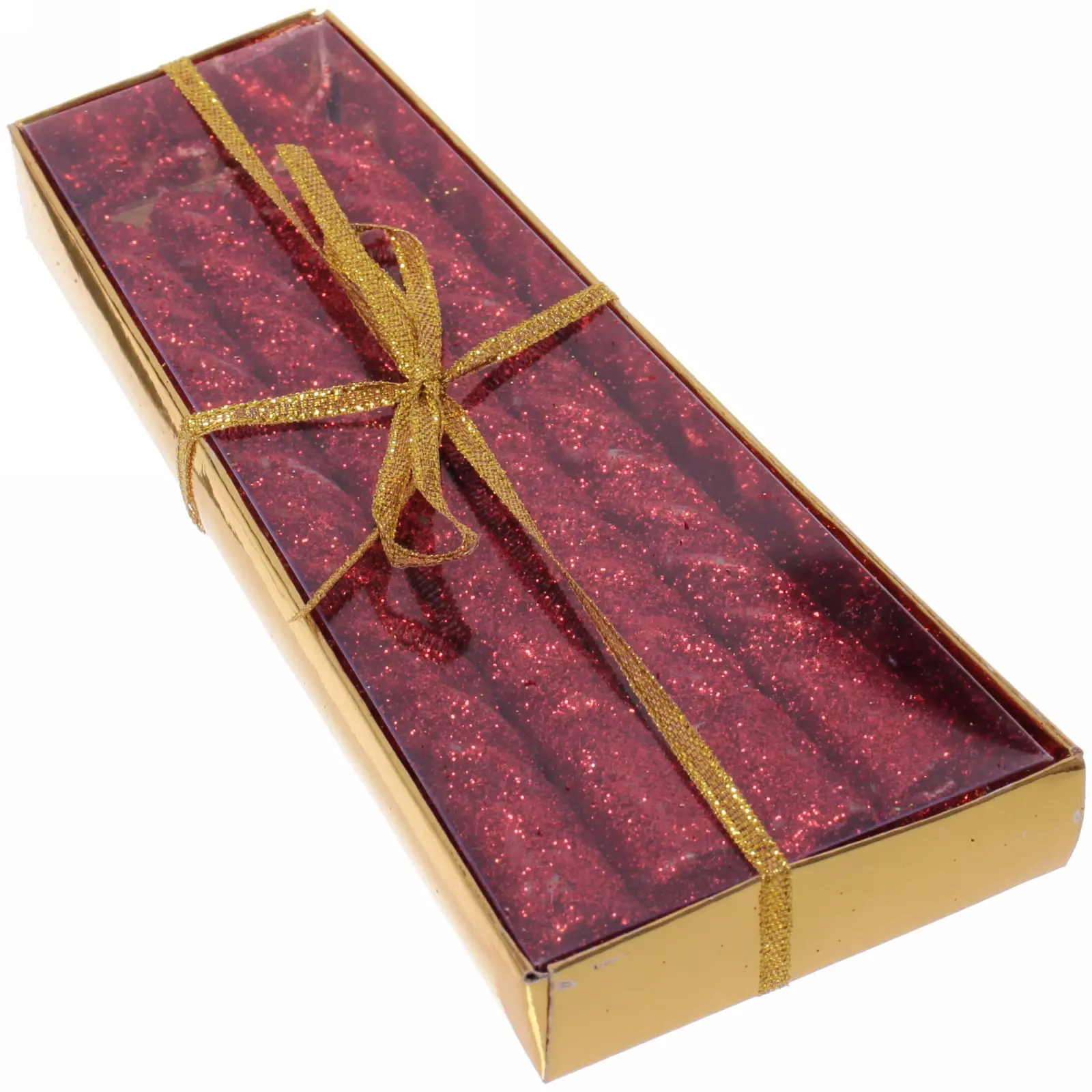 Свечи витые "Звездный блеск" 15см, красные с блестками, в подарочной коробке