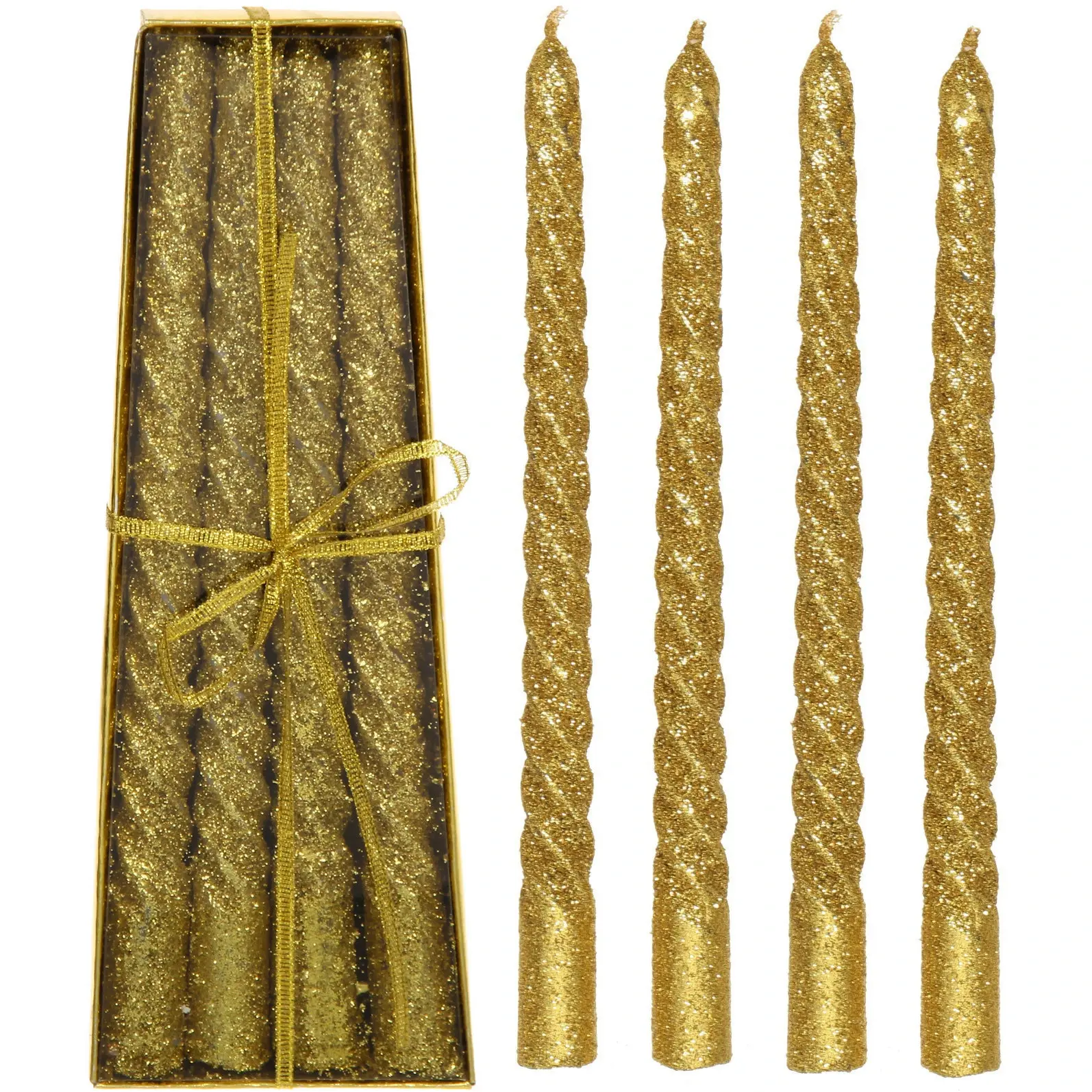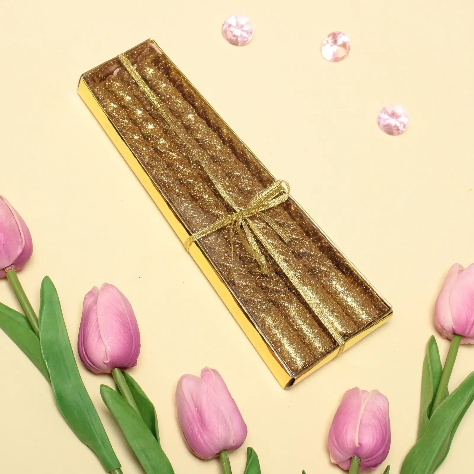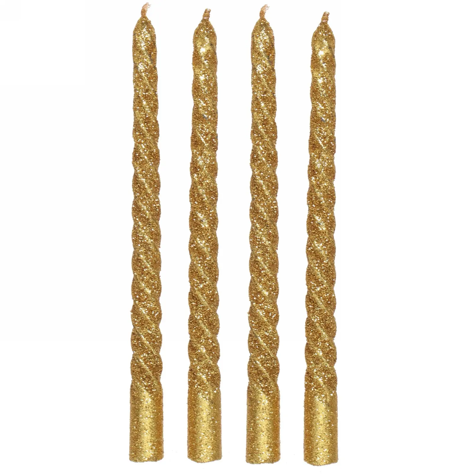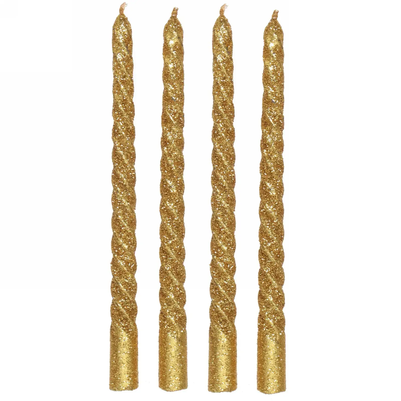 Эти оригинальные витые свечи «Звездный блеск» в золотом цвете идеально подходят для украшения праздничного интерьера, создания уюта и праздничного настроения. Свечи длиной 20 см выполнены из высокого качества воска, что обеспечивает безопасное горение и долговечность. Комплект из 4 штук удобно разместится в подарочной коробке, украшая любой интерьер и становясь отличным подарком.
