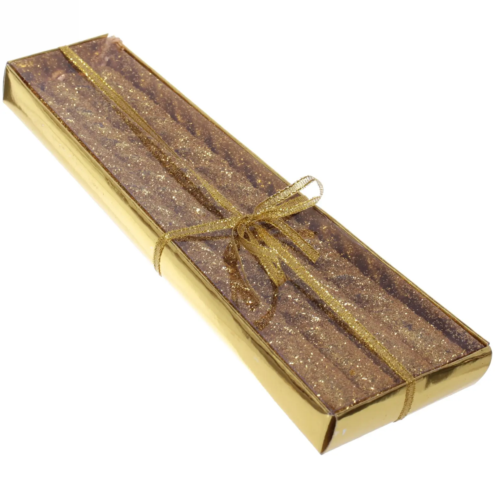 Эффектные свечи отлично подходят для новогодних, рождественских и праздничных мероприятий, а их застёжки и декоративный узор создают изысканный внешний вид. Простота в использовании позволяет быстро и легко подготовить праздничное оформление, а яркое покрытие и золотой цвет придают особый шик. Материал — воск, а размер — 20 см, что обеспечивает продолжительное и равномерное горение. Эти свечи станут неотъемлемой частью праздничного уюта и эстетического настроения.