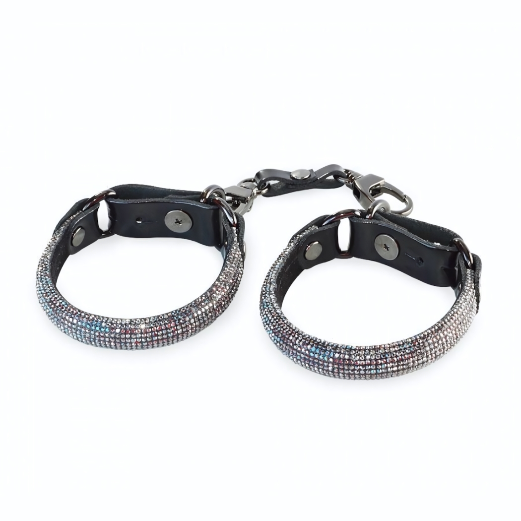 Создайте неповторимый стиль с элегантными наручниками, сочетающими дерзкий шарм и максимальный комфорт. Велюровая подкладка гарантирует приятное соприкосновение с кожей, а сверкающие кристаллы добавляют таинственности вашему образу.