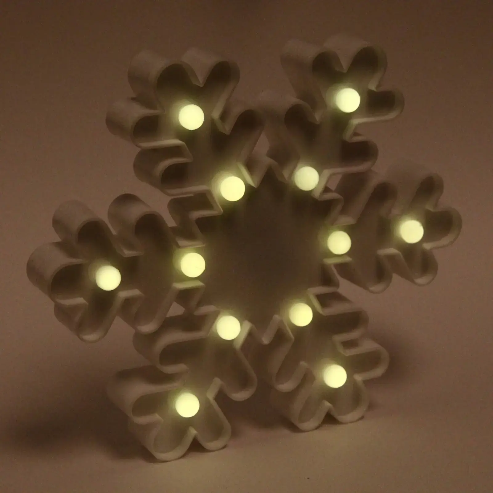 Светильник «Снежинка» выполнен из качественного пластика, что обеспечивает его легкость и долговечность. 12 встроенных LED лампочек излучают мягкий теплый свет, создавая уютную атмосферу. Декор в форме снежинки с округлыми формами и плавными линиями придаст вашему дому современный и стильный вид. Этот светильник станет отличным подарком для ваших близких на Новый год или другие праздники.
