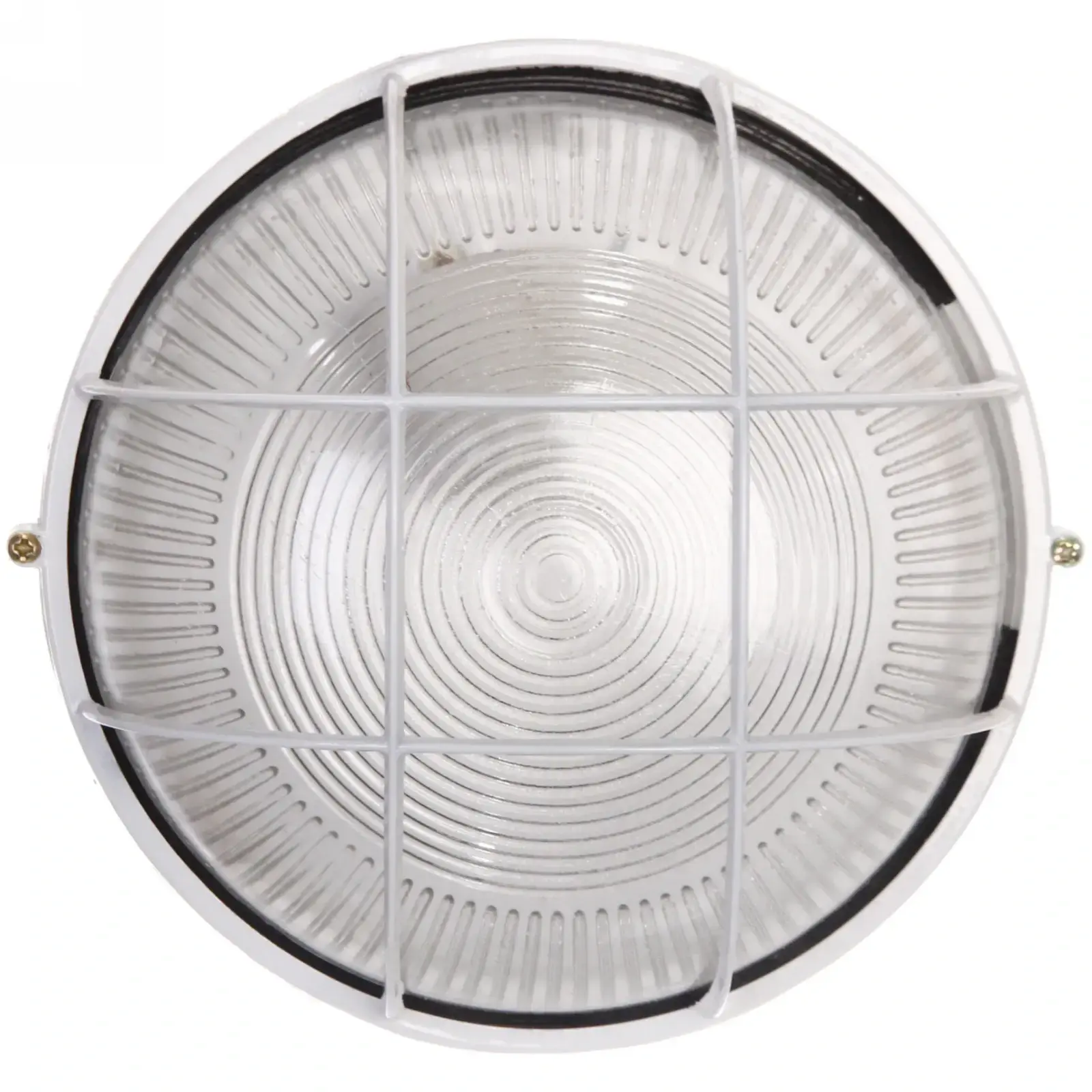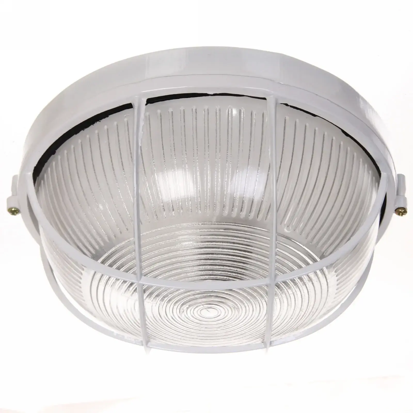 Круглая форма и рифлёная текстура рассеивают свет равномерно по всей площади. Металлическая решётка защищает колбу от механических повреждений, а силиконовая прокладка обеспечивает полную герметичность конструкции.