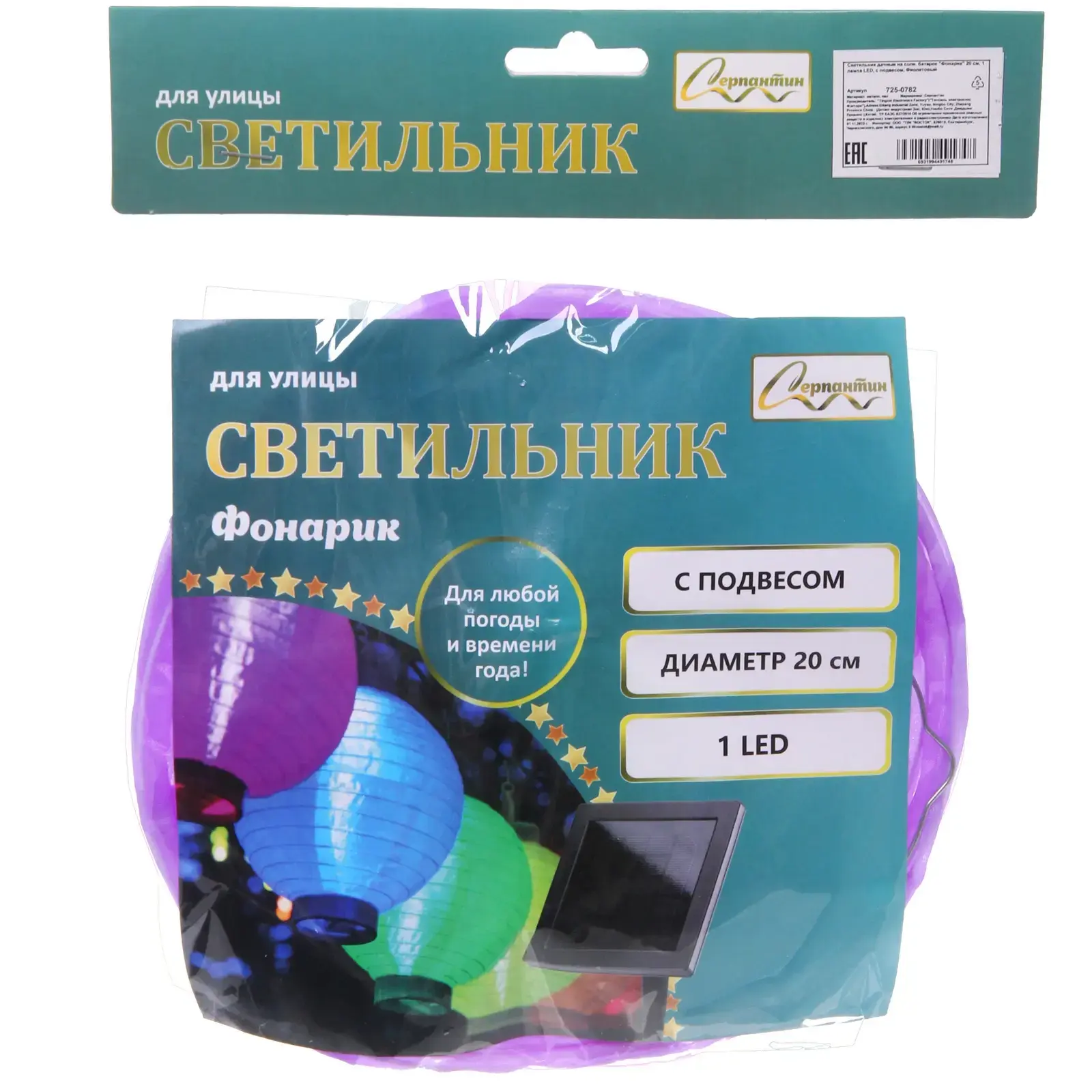 Светильник имеет диаметр 20 см и оснащен одной светодиодной лампой (LED), что обеспечивает яркое и экономичное освещение. Его фиолетовый цвет с полосатым узором добавляет изюминку в ваш сад. Не упустите возможность сделать ваше пространство более уютным и привлекательным с помощью этого уникального светильника!