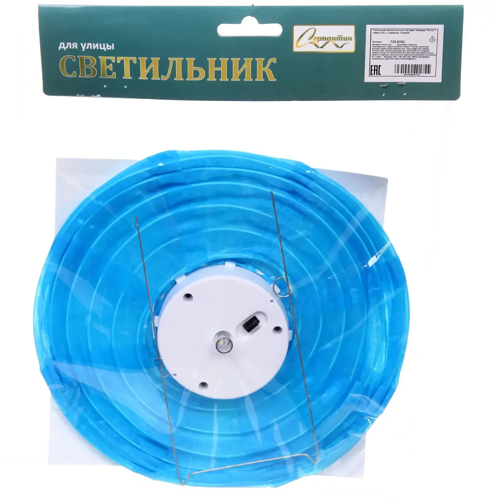 Светильник оснащен одной LED-лампой и работает от солнечной энергии, что позволяет экономить электроэнергию и заботиться об экологии. Он идеально подходит для использования на открытом воздухе, будь то дача, сад или балкон. Благодаря металлической ручке, фонарь можно легко подвесить в любом удобном месте.