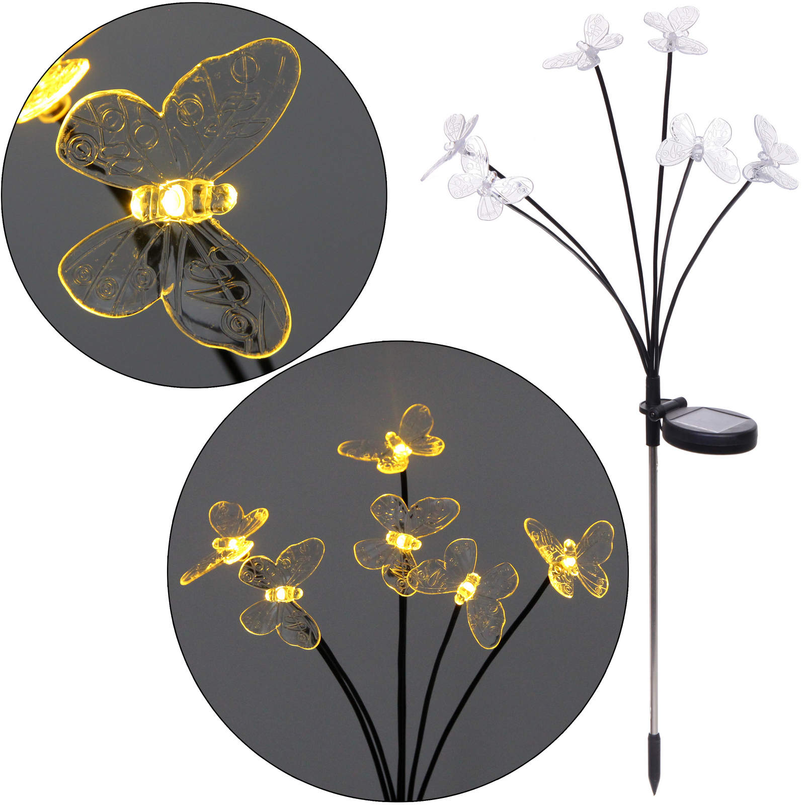Светильник садовый «Бабочки» на солнечной батарее, 70 см, 6 шт, металл/пластик, теплый свет