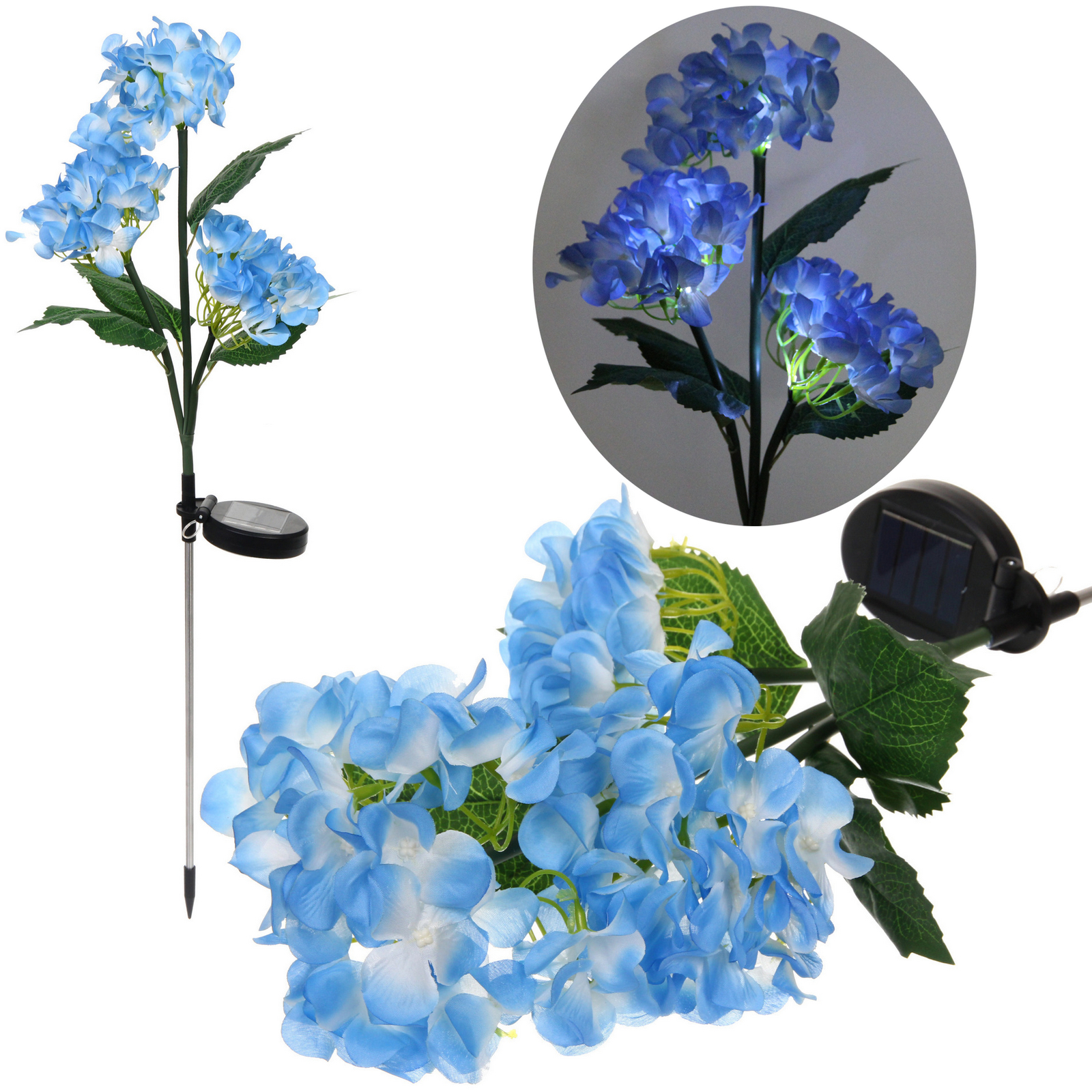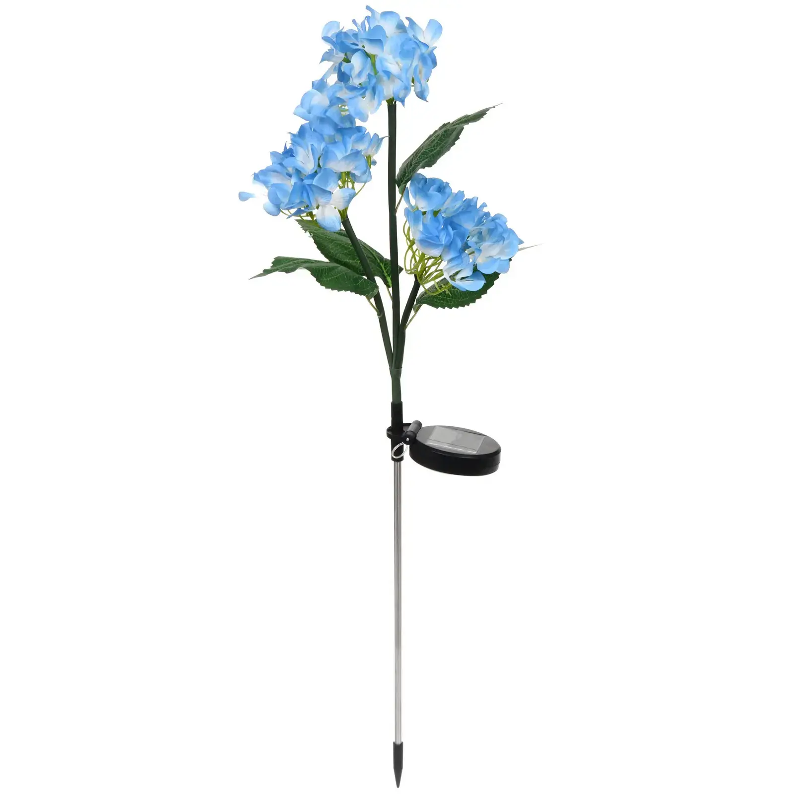 Светильник идеально подходит для использования в саду, на террасе или в качестве украшения для приусадебного участка. Он легко устанавливается в грунт благодаря заостренному стеблю, выполненному из прочного пластика. Декоративные цветы, выполненные в нежных голубых оттенках, создают эффект естественной цветочной композиции, а зелёные листья добавляют реалистичности.