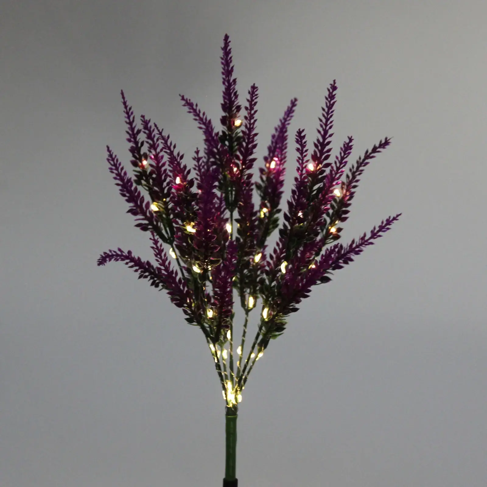 Светильник «Лаванда» выполнен из качественных материалов: металл, ПВХ и пластик, что обеспечивает его долговечность и устойчивость к внешним воздействиям. Фиолетовые цветы с реалистичной формой создают эффект натурального растения, добавляя яркие акценты в ваш ландшафтный дизайн. Кроме того, он не требует подключения к электросети, что делает его удобным и практичным решением для освещения.