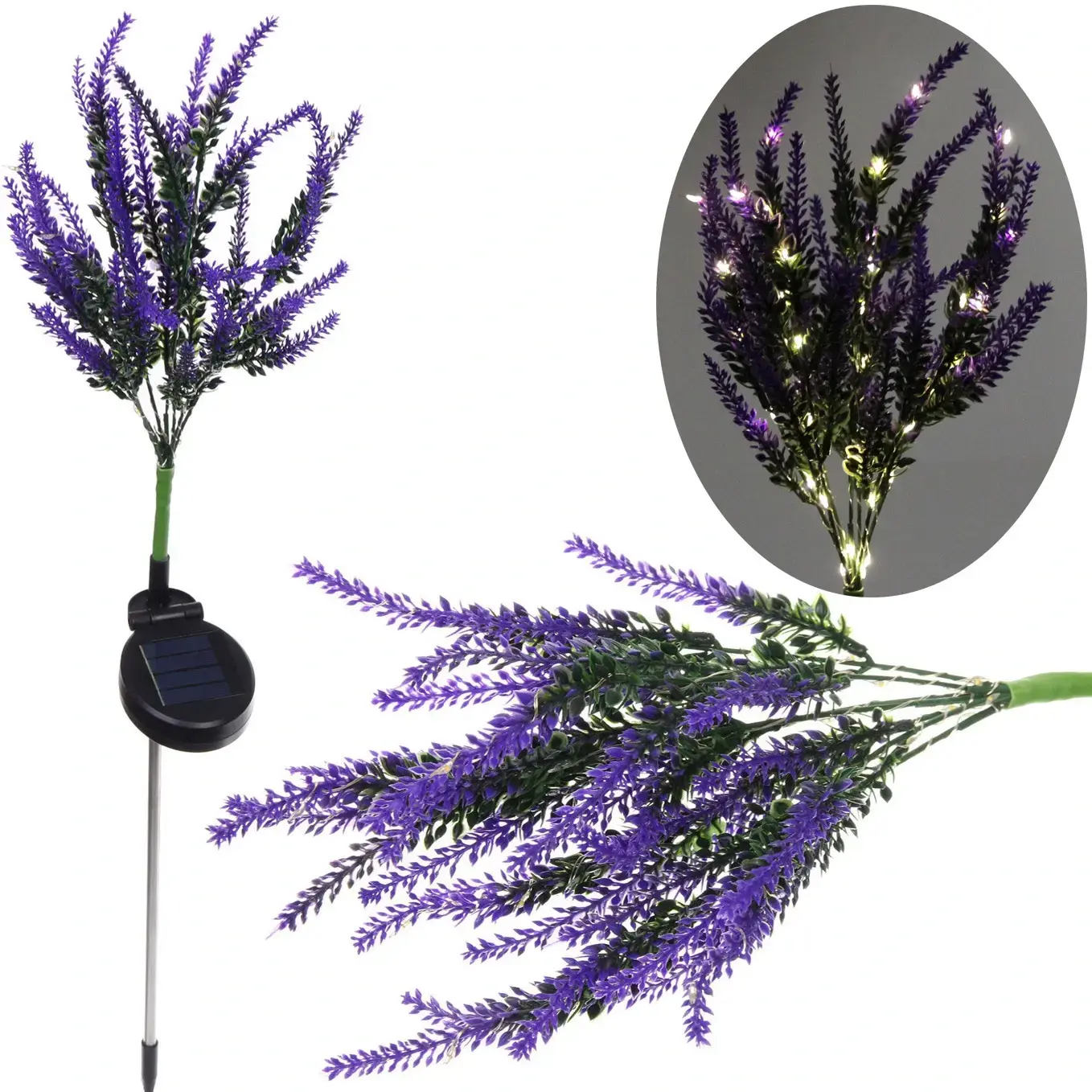 Светильник «Лаванда» выполнен из качественных материалов: металл, ПВХ и пластик, что обеспечивает его долговечность и устойчивость к внешним воздействиям. Яркие фиолетовые цветы и зеленые листья создают эффект натурального растения, а теплый белый свет добавляет уюта и романтики в вечернее время. Этот светильник станет отличным дополнением к вашему ландшафтному дизайну.