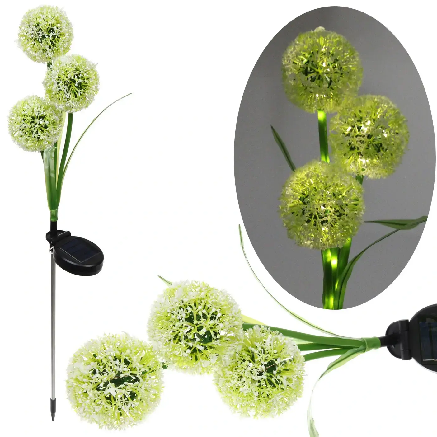 Светильник имеет высоту 75 см и выполнен из качественных материалов: металл, ПВХ и пластик. Цветы светильника имеют светло-зеленый оттенок с белыми элементами, что создает эффект натуральности и пышности. Установите его в своем саду и наслаждайтесь красотой и уютом, который он приносит.