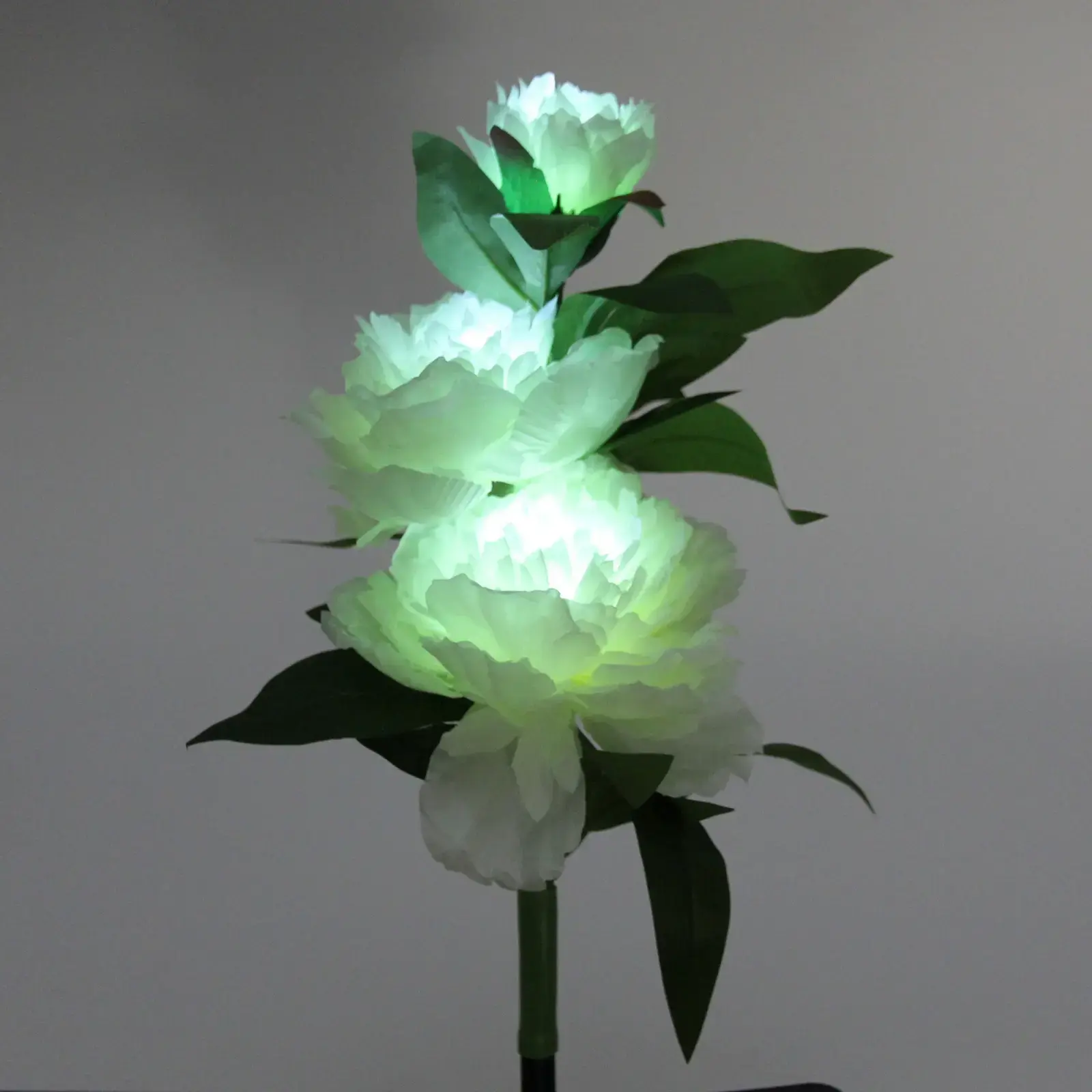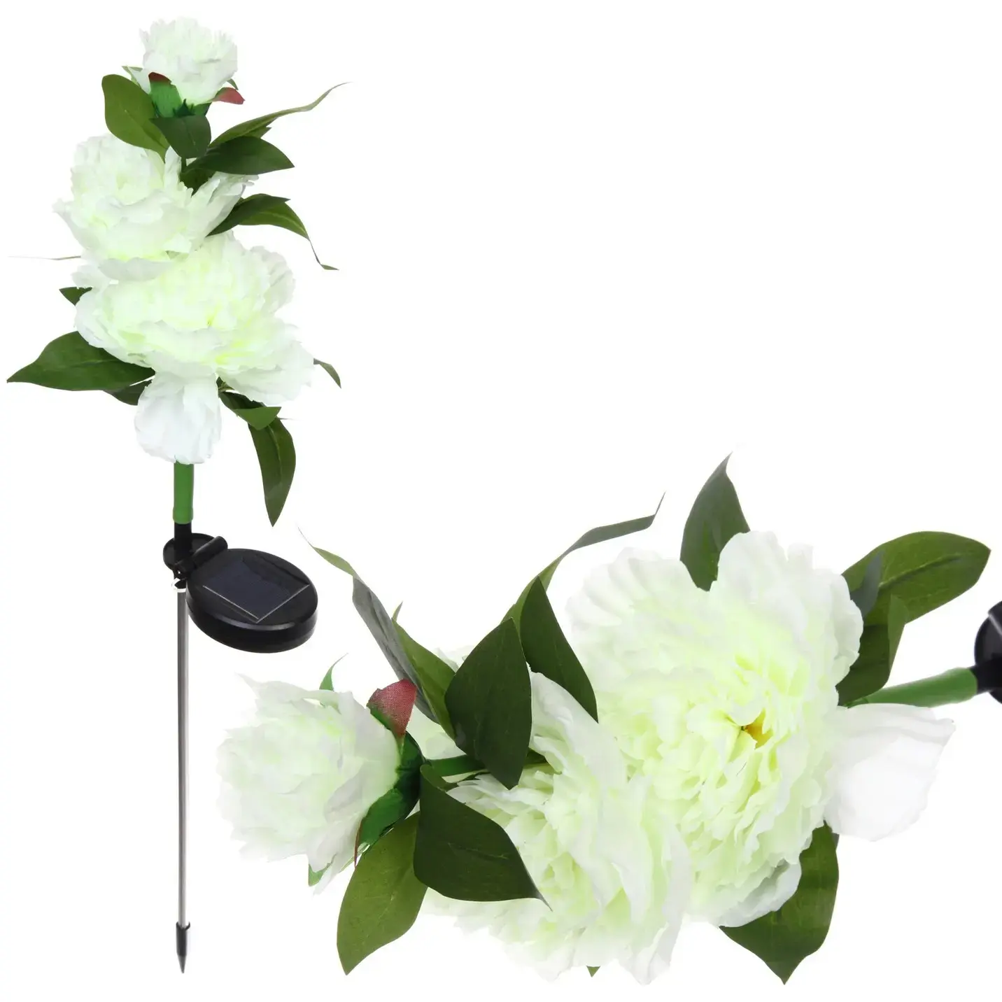Светильник идеально подходит для установки в саду, на даче или в любом другом открытом пространстве. Он выполнен в виде белого цветка с зелеными листьями, что делает его стильным дополнением к любому ландшафтному дизайну. Установка не требует специальных навыков — просто вкопайте стебель в землю, и ваш светильник готов к работе.