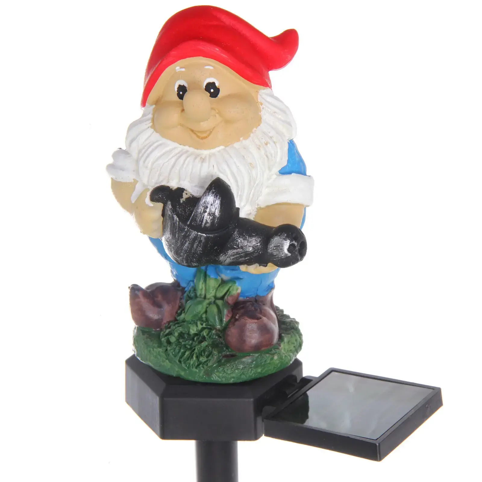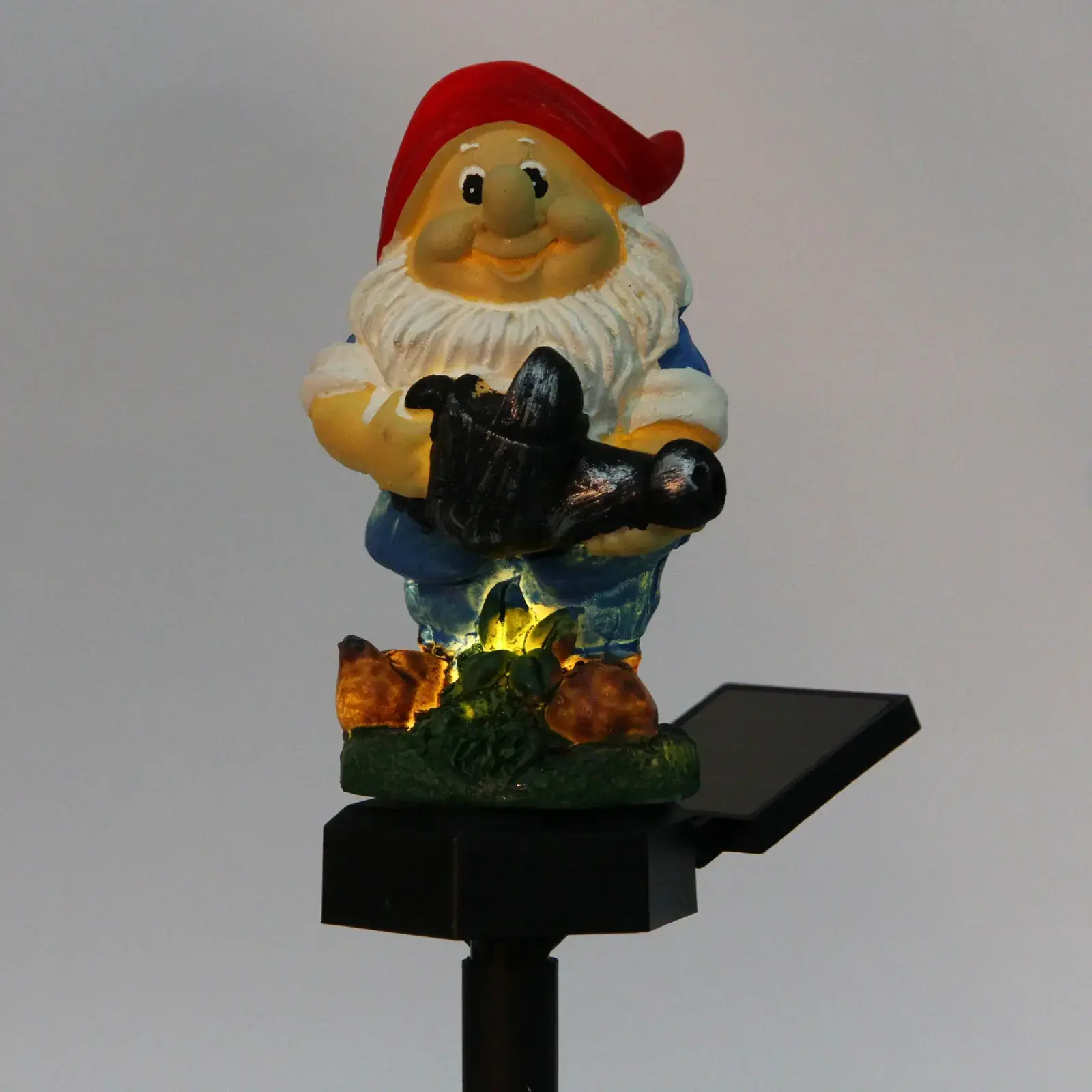 Светильник-гномик создаст уютную атмосферу и украсит ваш участок. Его теплый белый свет автоматически включается в темноте, работая от встроенной солнечной батареи.