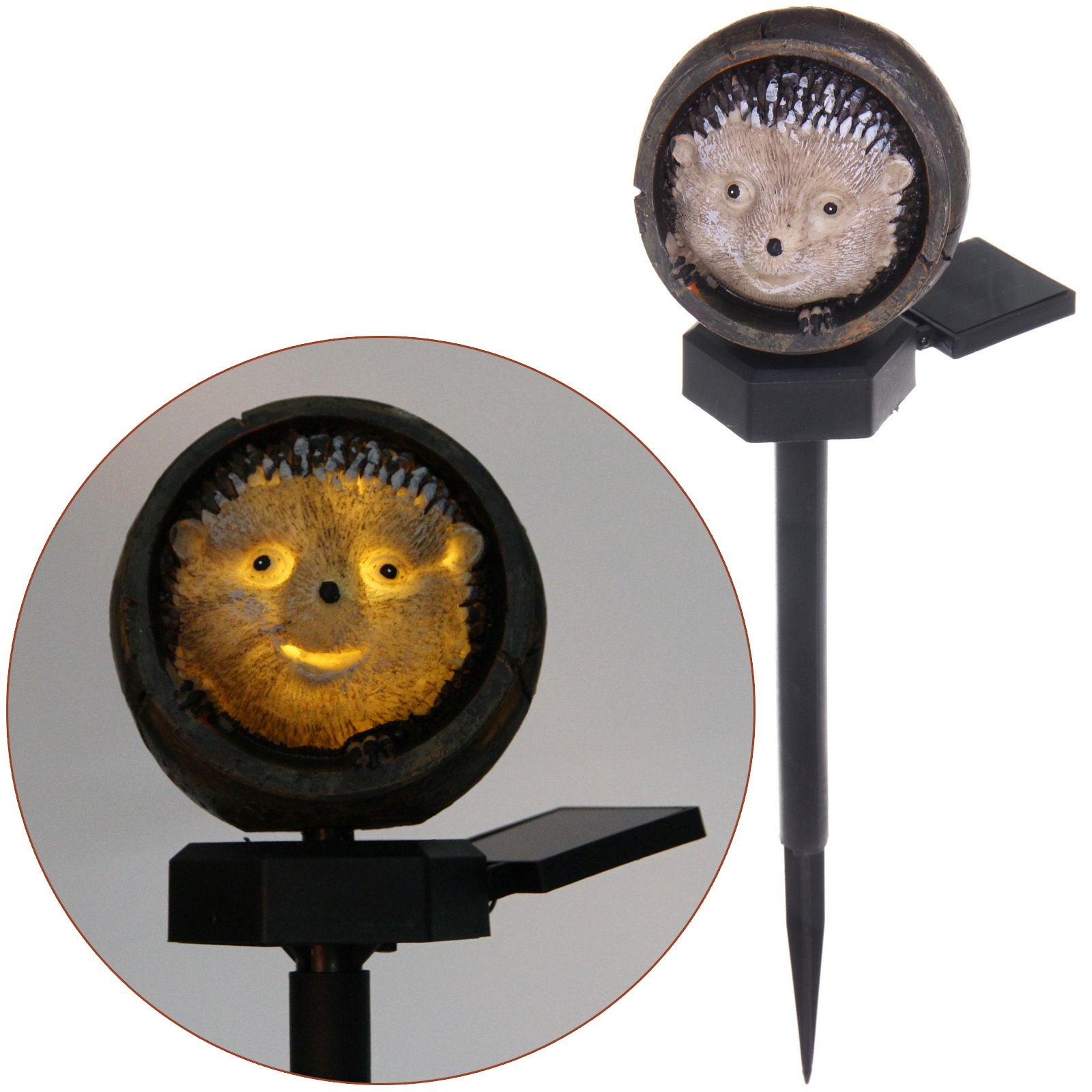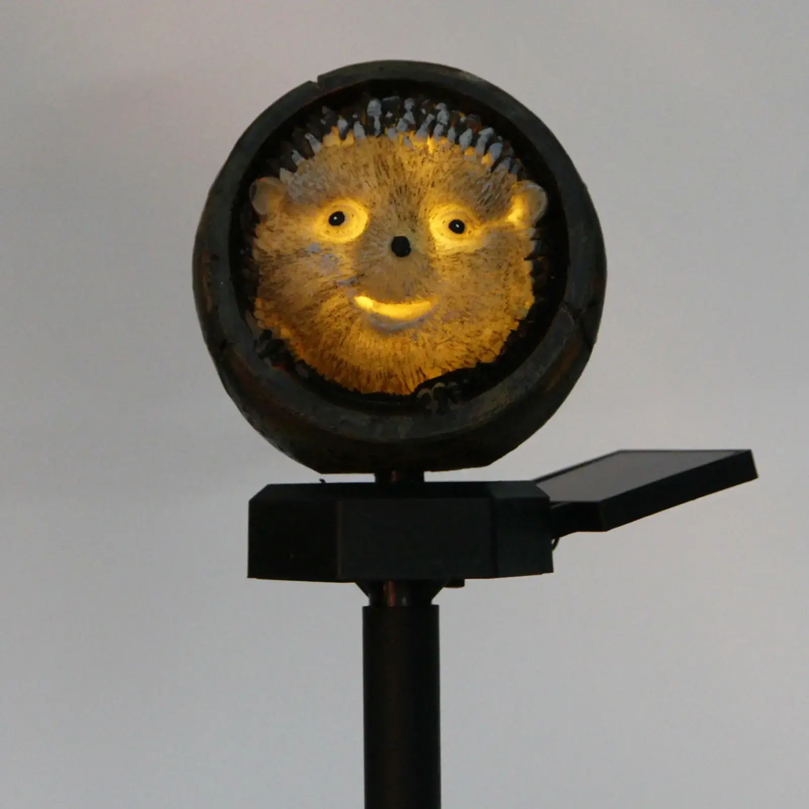 Светильник изготовлен из комбинации металла, пластика и полистоуна, что обеспечивает его прочность и долговечность. Размеры 8×8×8.5 см делают его компактным, но заметным элементом ландшафтного дизайна. Светильник автоматически включается в темноте, создавая мягкое свечение через выразительные глаза и рот ежика.