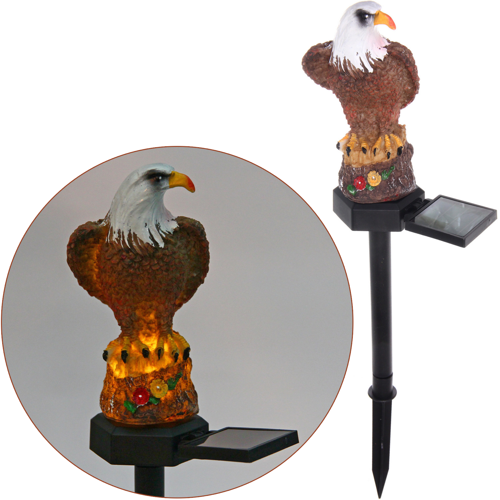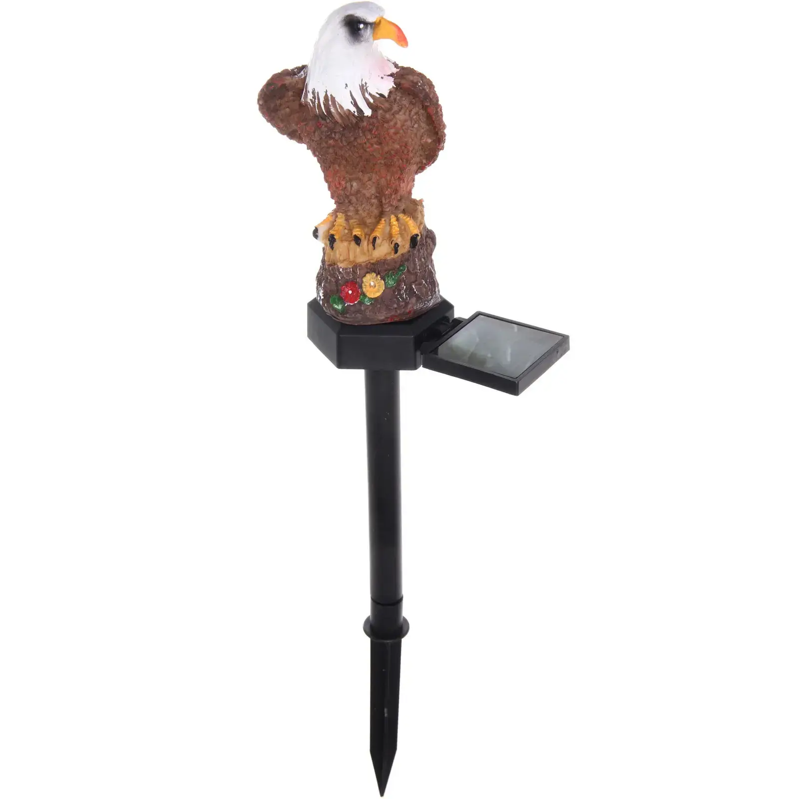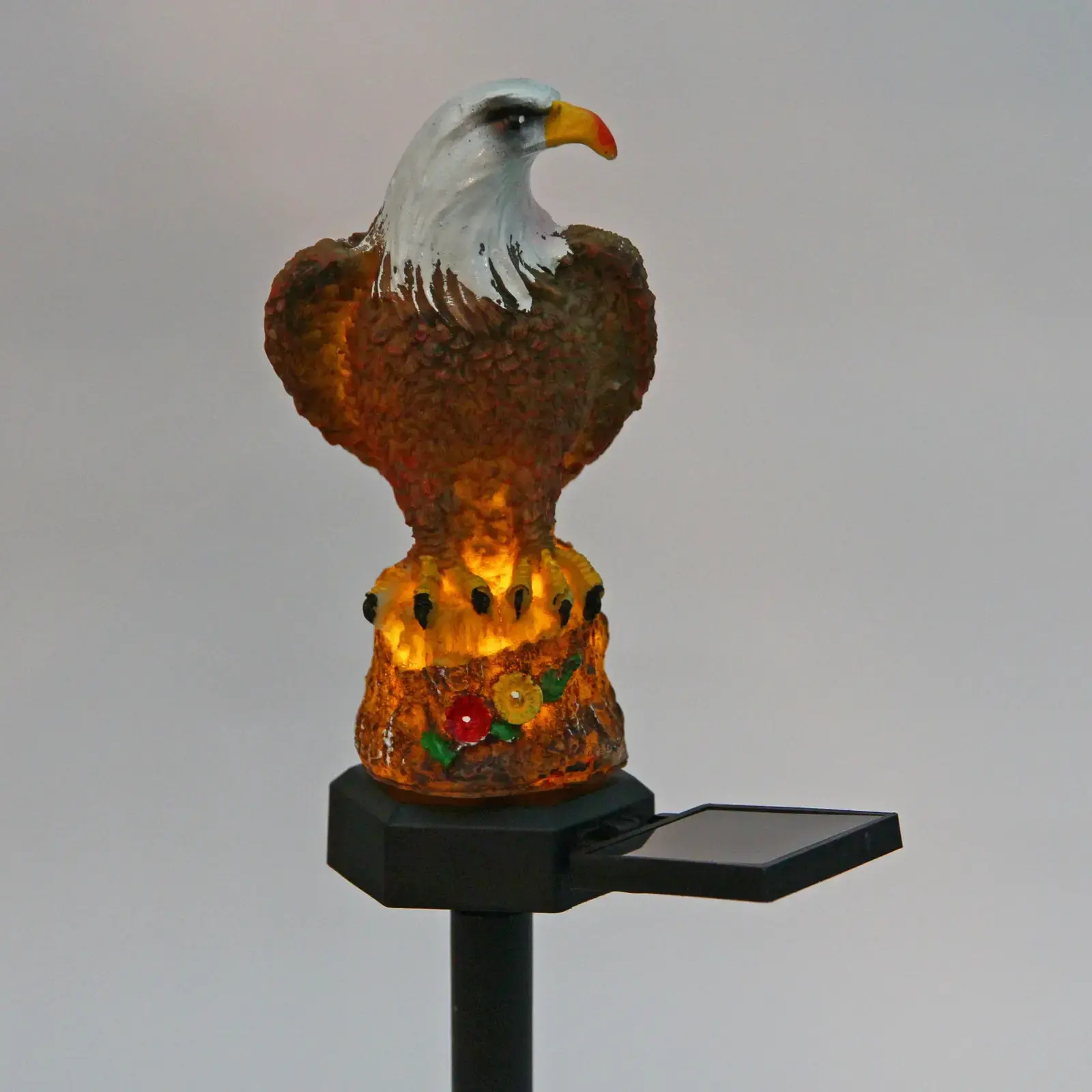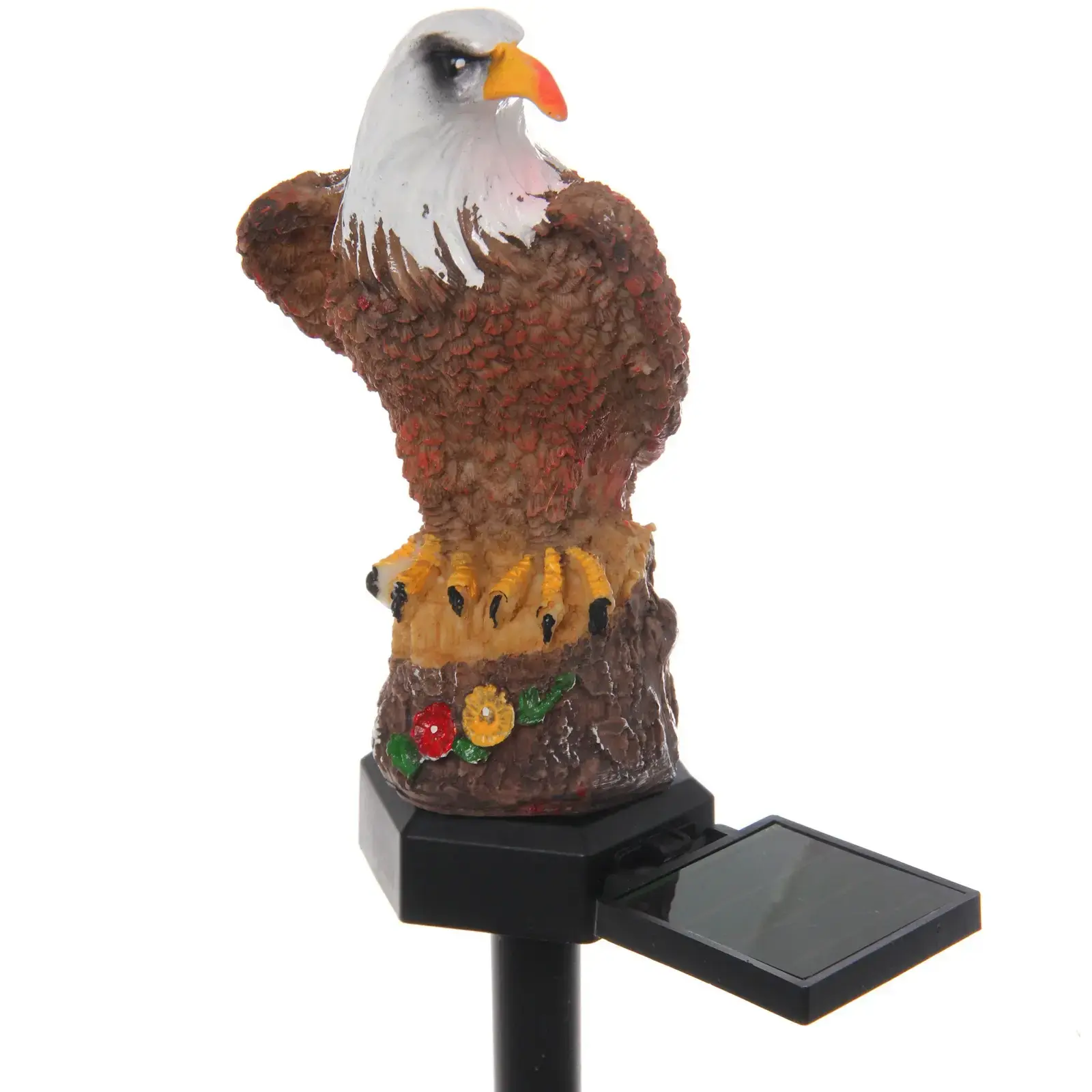 Выбирая светильник «Орел», вы получаете не только красивый элемент декора, но и практичное решение для освещения. Он выполнен из качественных материалов: металл, пластик и полистоун, что гарантирует долговечность и устойчивость к внешним воздействиям. Декоративная фигура орла с ярким клювом и детализированным оперением добавляет уникальности вашему саду.