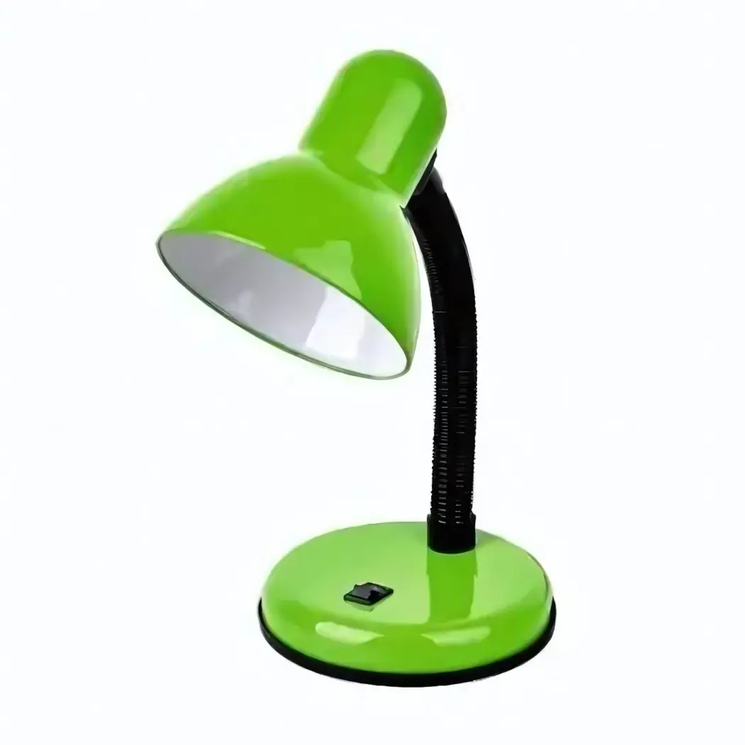 Зеленый пластиковый корпус устойчив к царапинам и прост в уходе. Компактные размеры (высота 20 см) экономят место на столе. Стандартный цоколь Е27 совместим с лампами накаливания и LED-светильниками мощностью до 60 Вт.