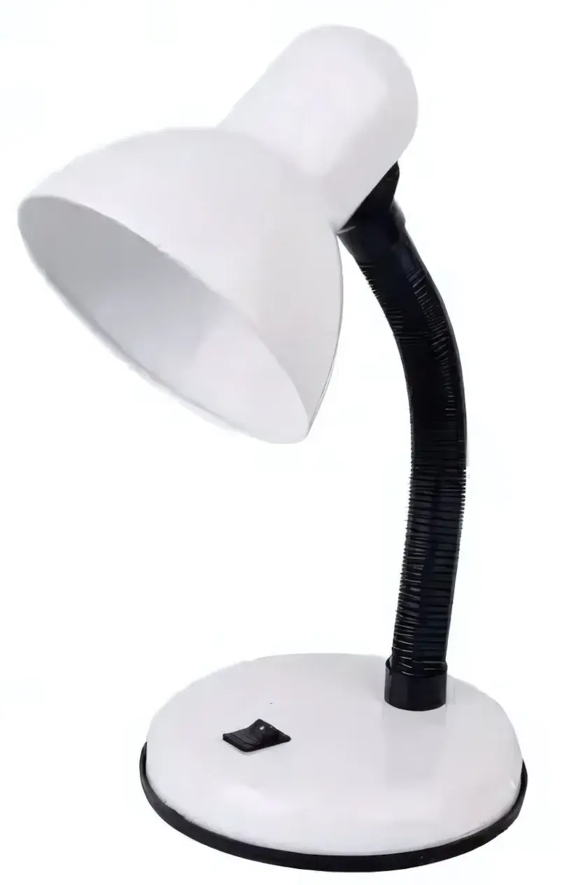 Гибкая металлическая штанга выдерживает многократные изгибы без потери формы. Белый матовый абажур равномерно рассеивает свет, защищая глаза от бликов. Устойчивое основание из ударопрочного пластика гарантирует безопасность использования.
