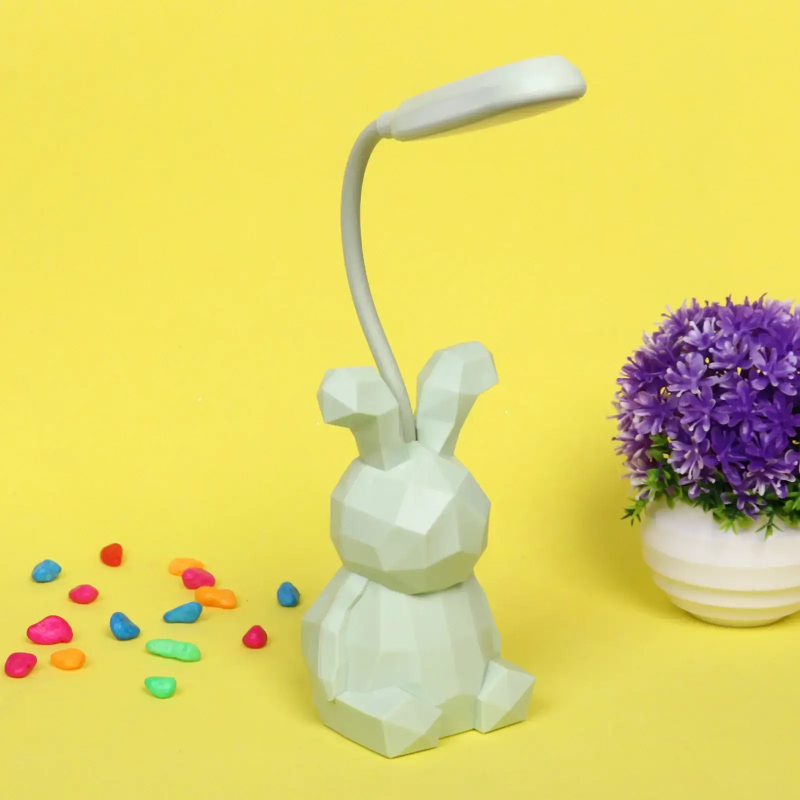 Геометрический дизайн в форме зайца с мягкой LED-подсветкой создаёт уютную атмосферу и становится изюминкой любого пространства. Идеален для рабочего стола, детской комнаты или в качестве декоративного элемента.
