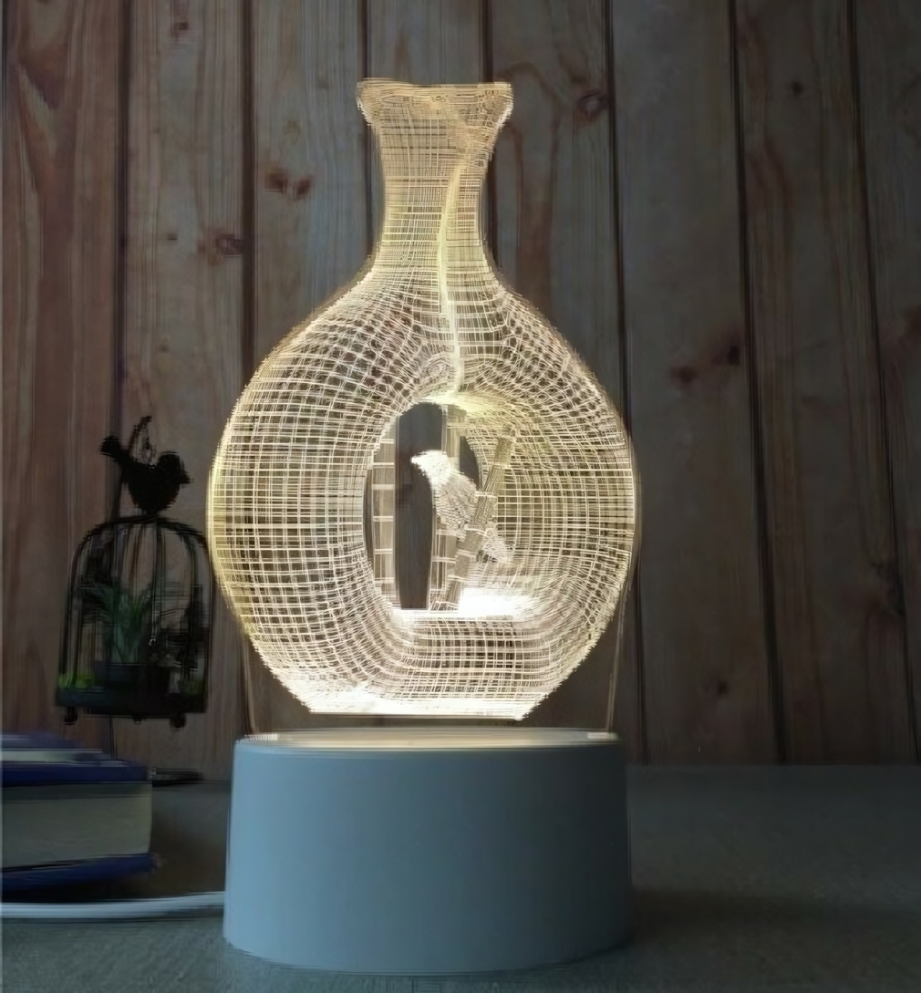 Ночник с эффектом объемной визуализации превратит ваше пространство в уголок гармонии. Мягкая подсветка сетчатой конструкции и силуэт птицы создают умиротворяющую картину для релаксации и романтических вечеров.