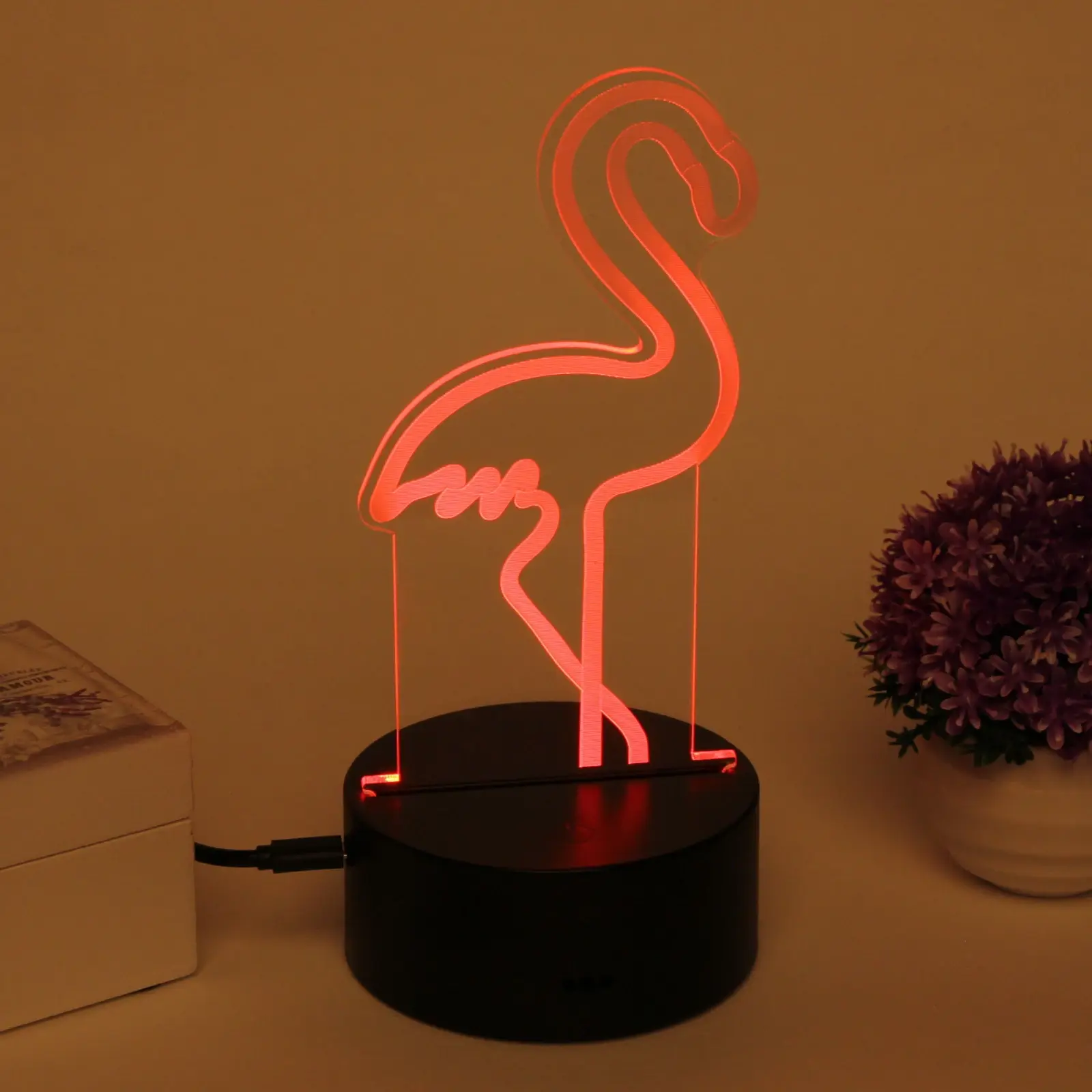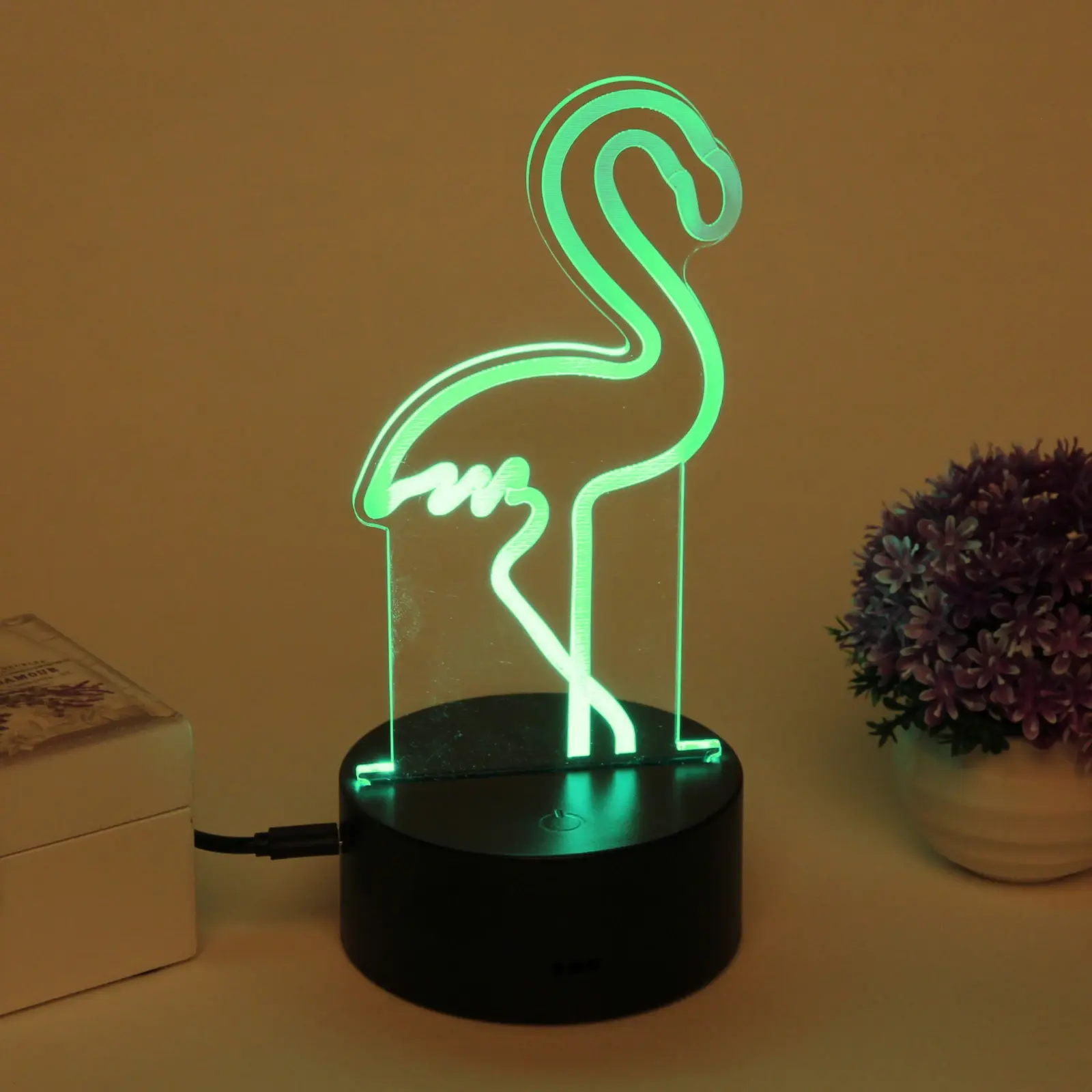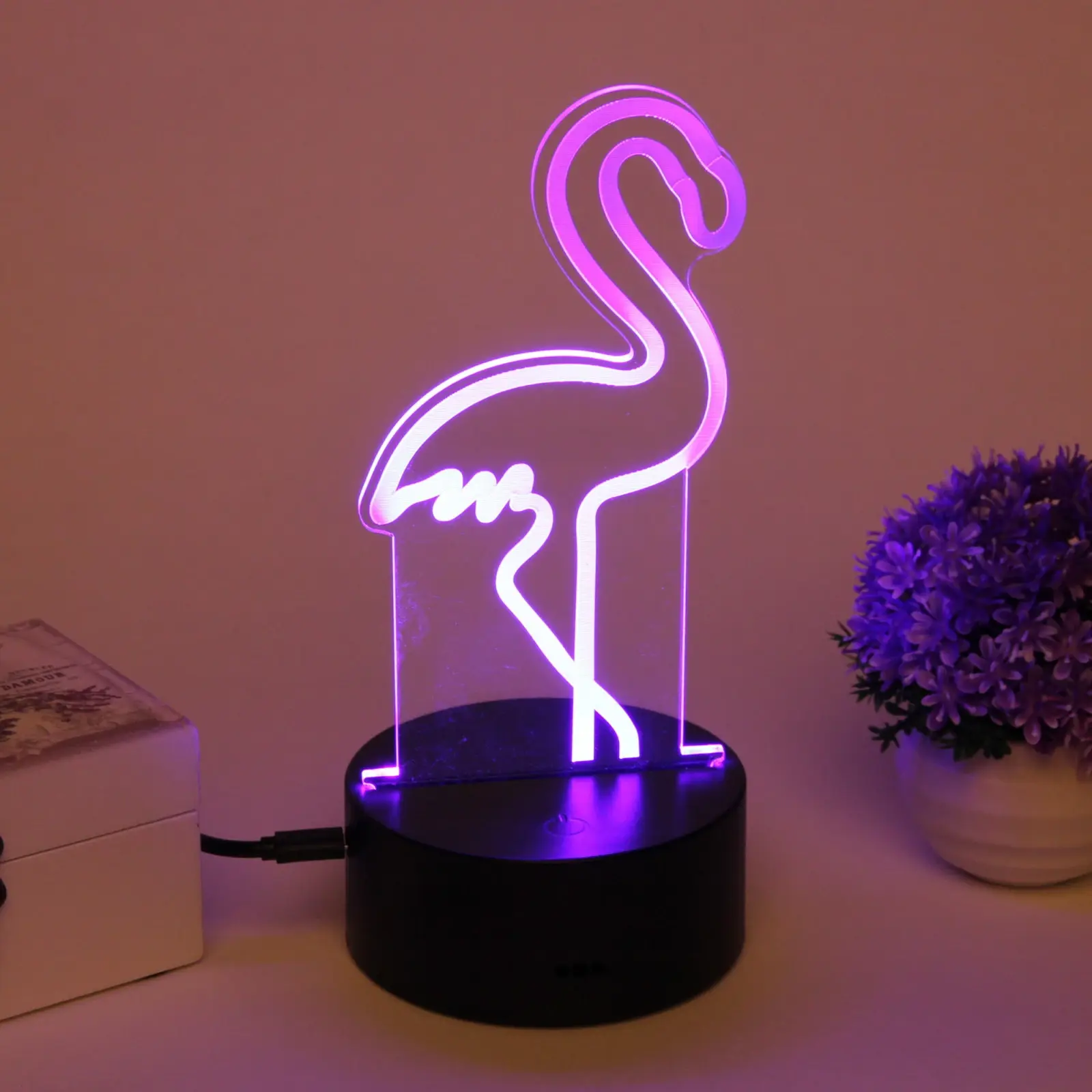 Светильник-ночник «3D-Фламинго» с LED-подсветкой, пластиковая подставка, USB-питание, черный