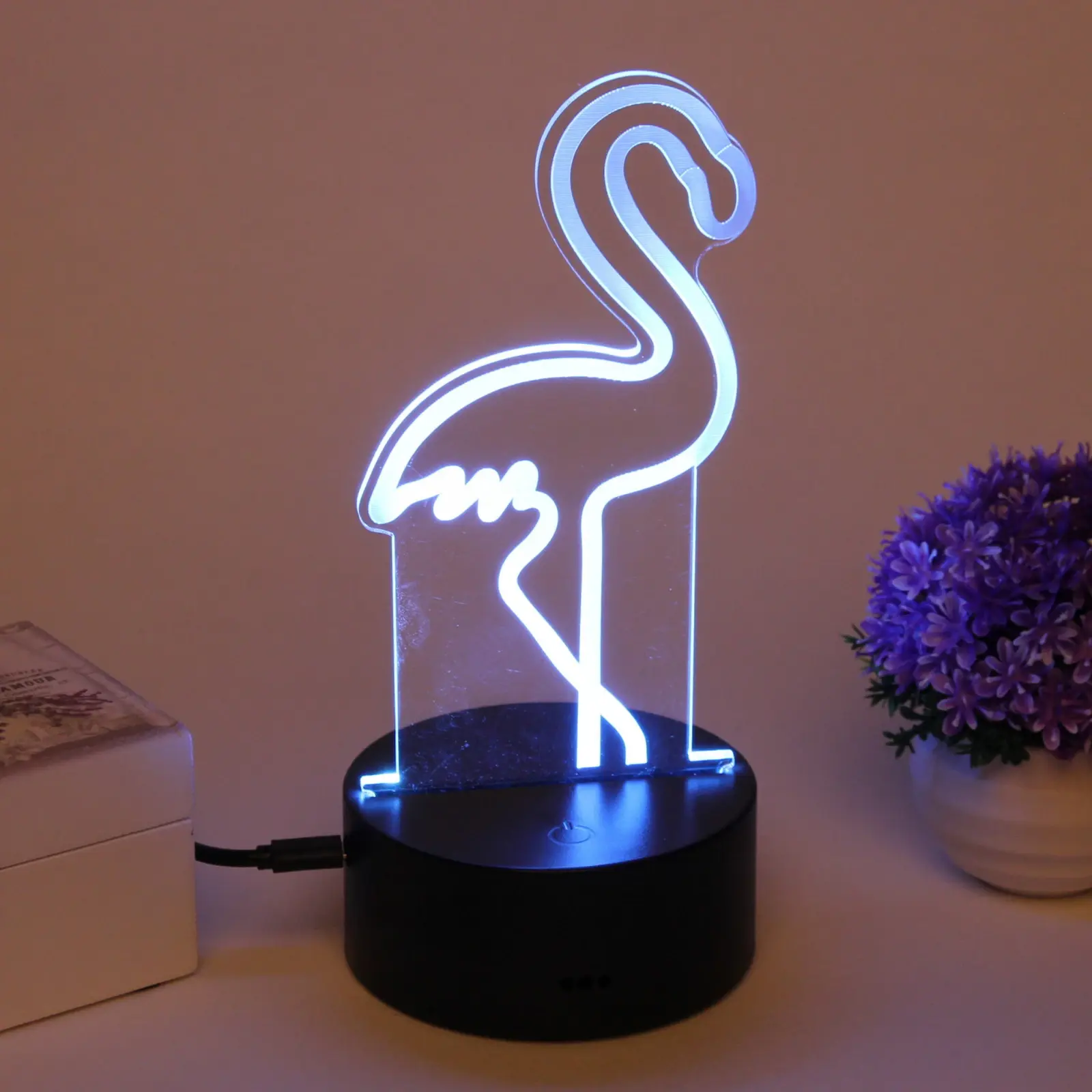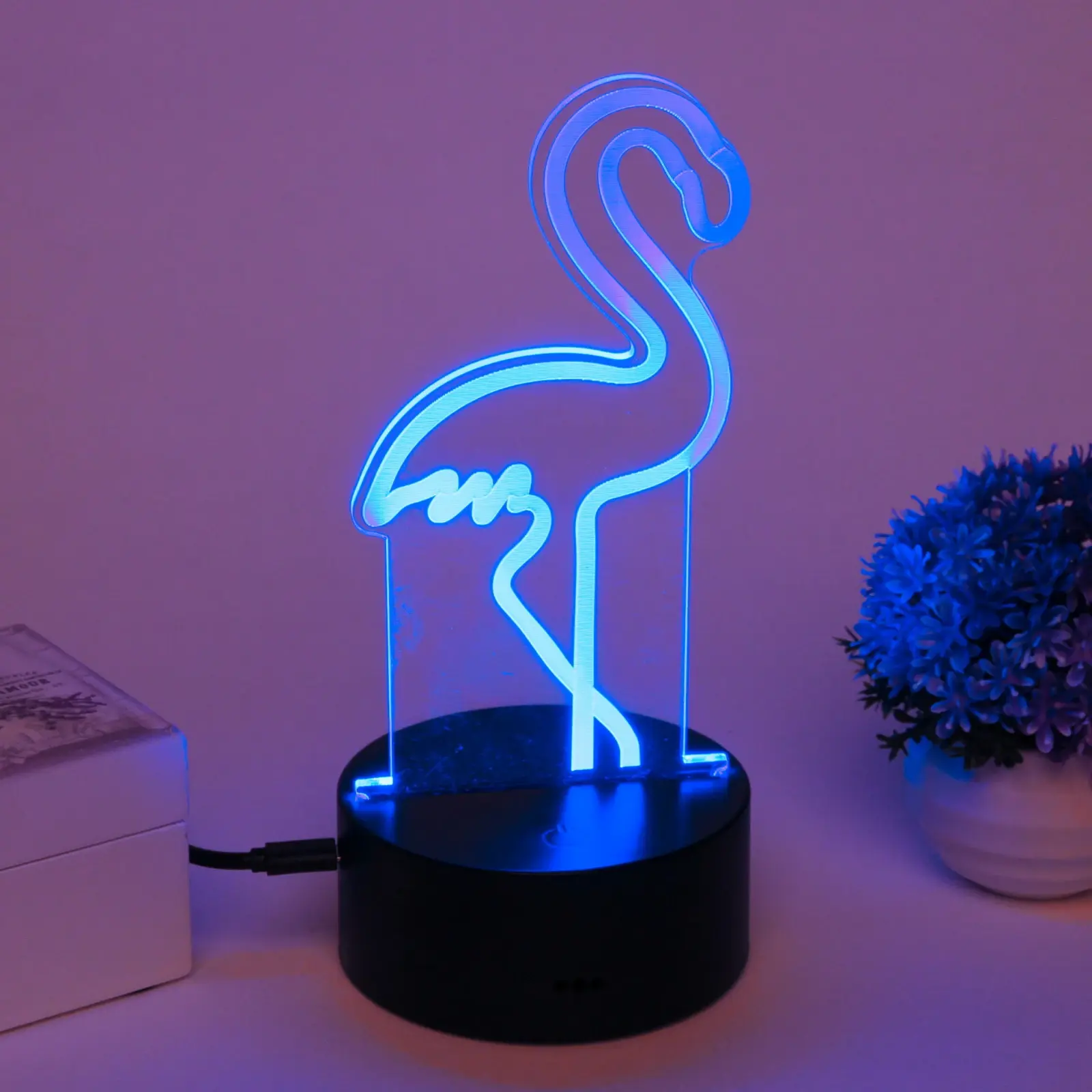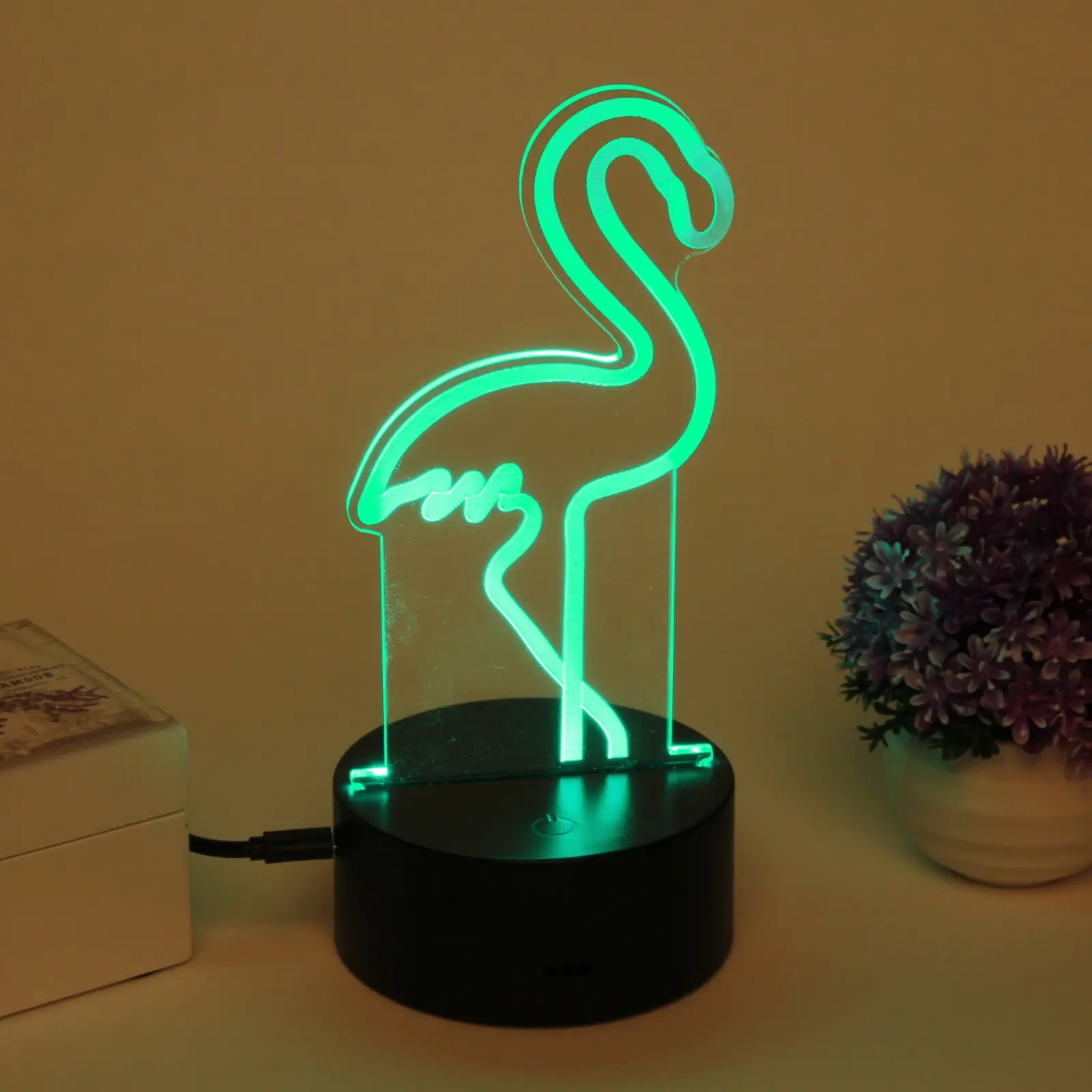 Светильник-ночник «3D-Фламинго» с LED-подсветкой, пластиковая подставка, USB-питание, черный