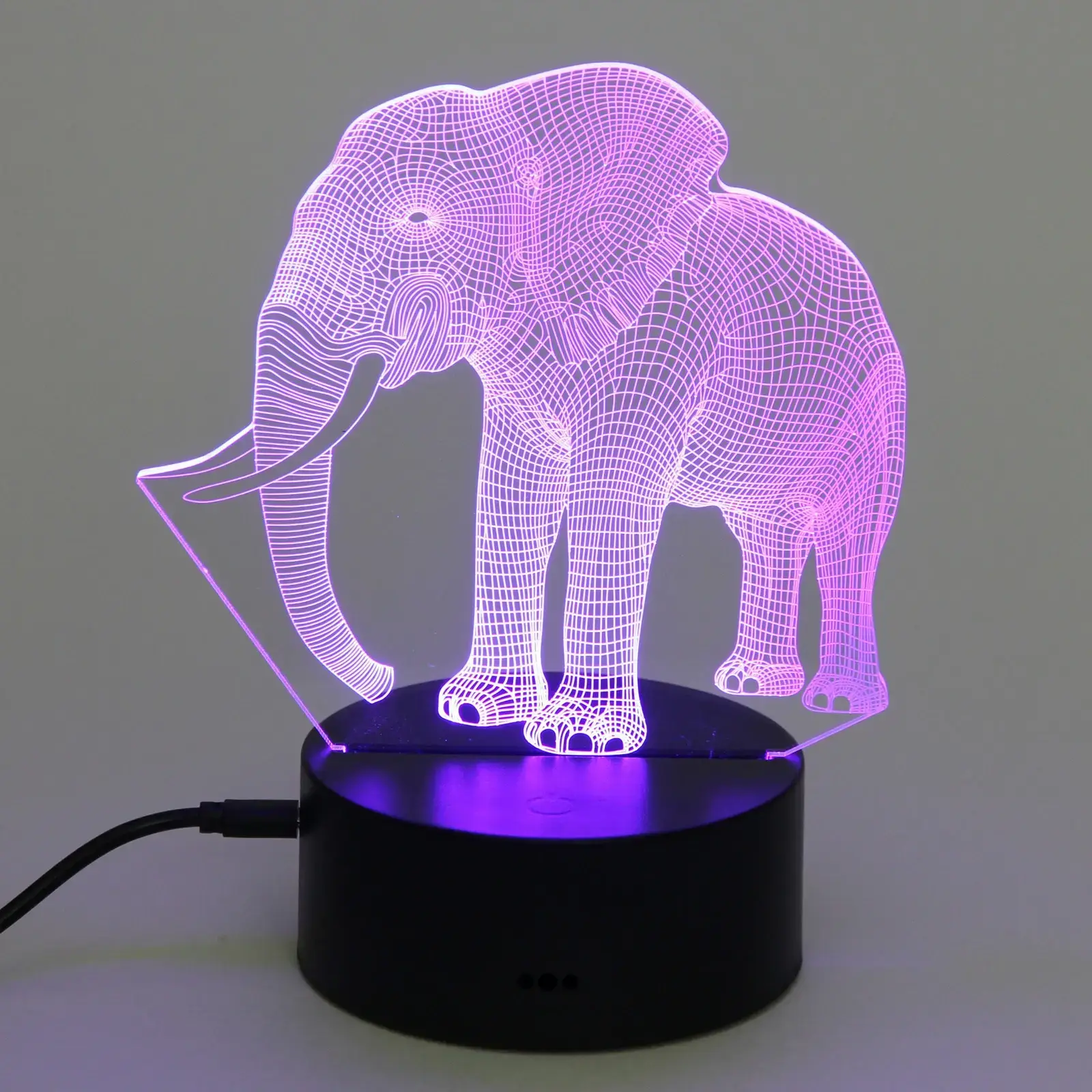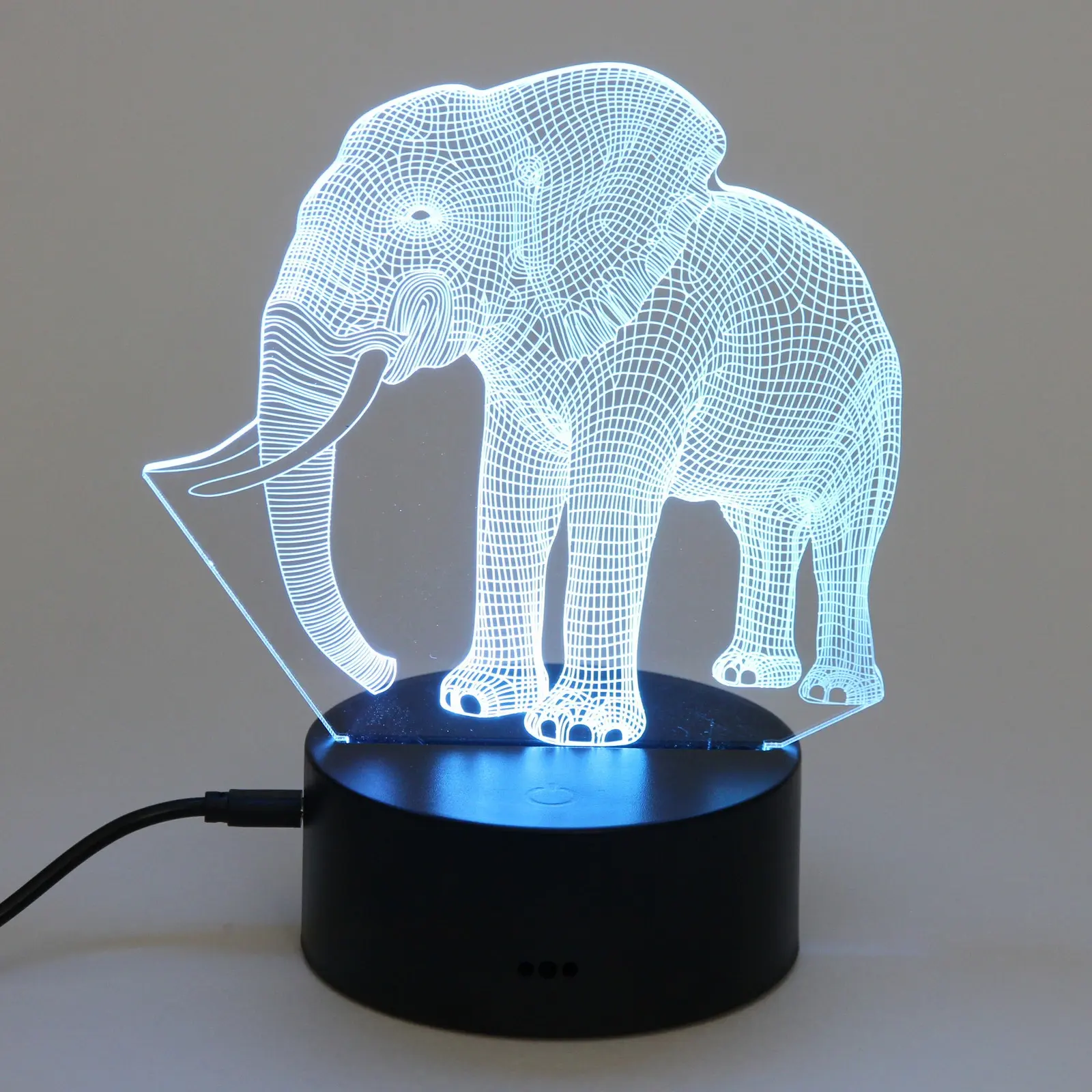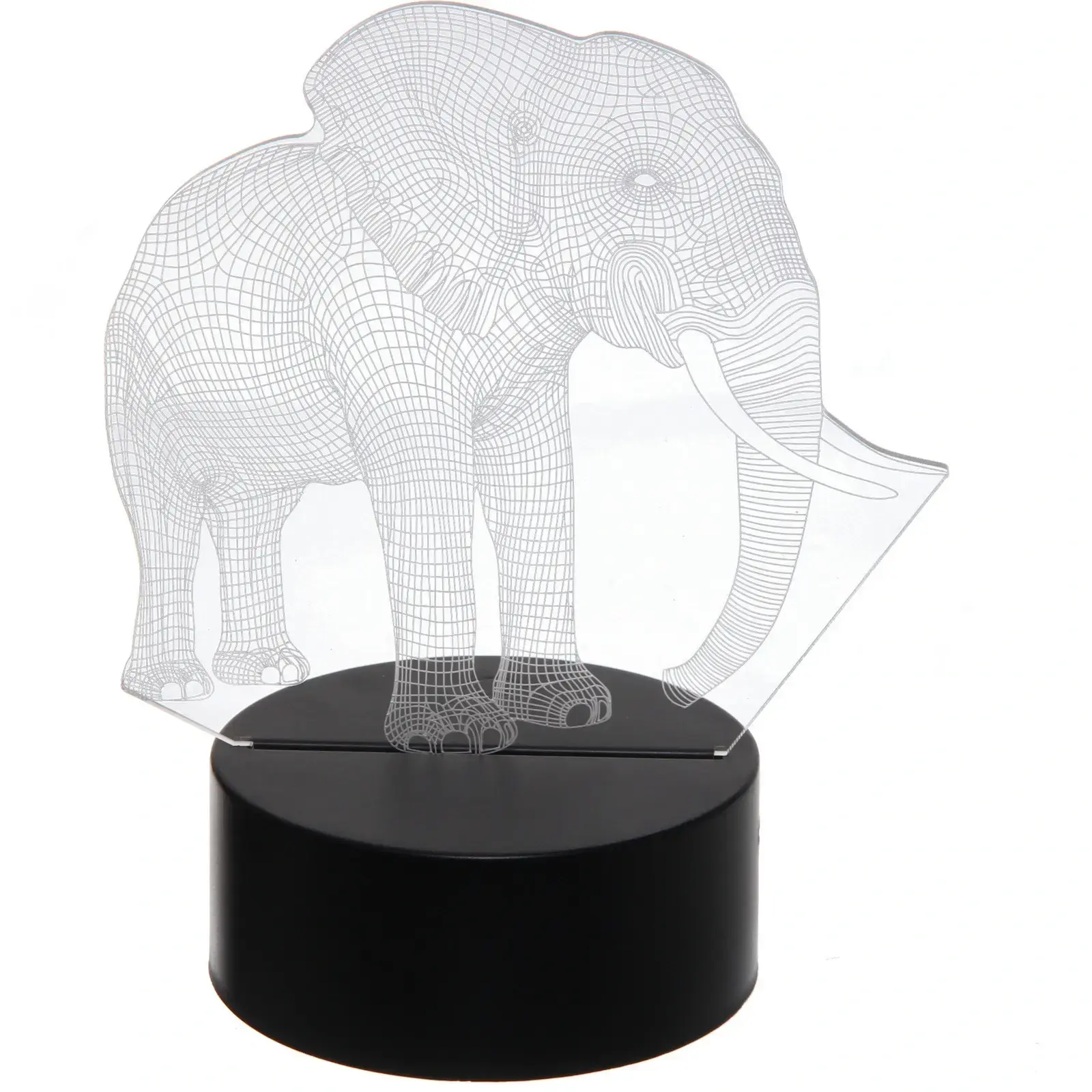 Светильник имеет размеры, которые делают его идеальным для настольного использования. Его акриловая панель с 3D-изображением слона создает эффект объемного изображения, что делает его не только функциональным, но и привлекательным элементом декора. Подставка выполнена из прочного пластика, что обеспечивает стабильность и долговечность. Этот светильник станет отличным подарком для друзей и близких, а также прекрасным дополнением к вашему интерьеру.