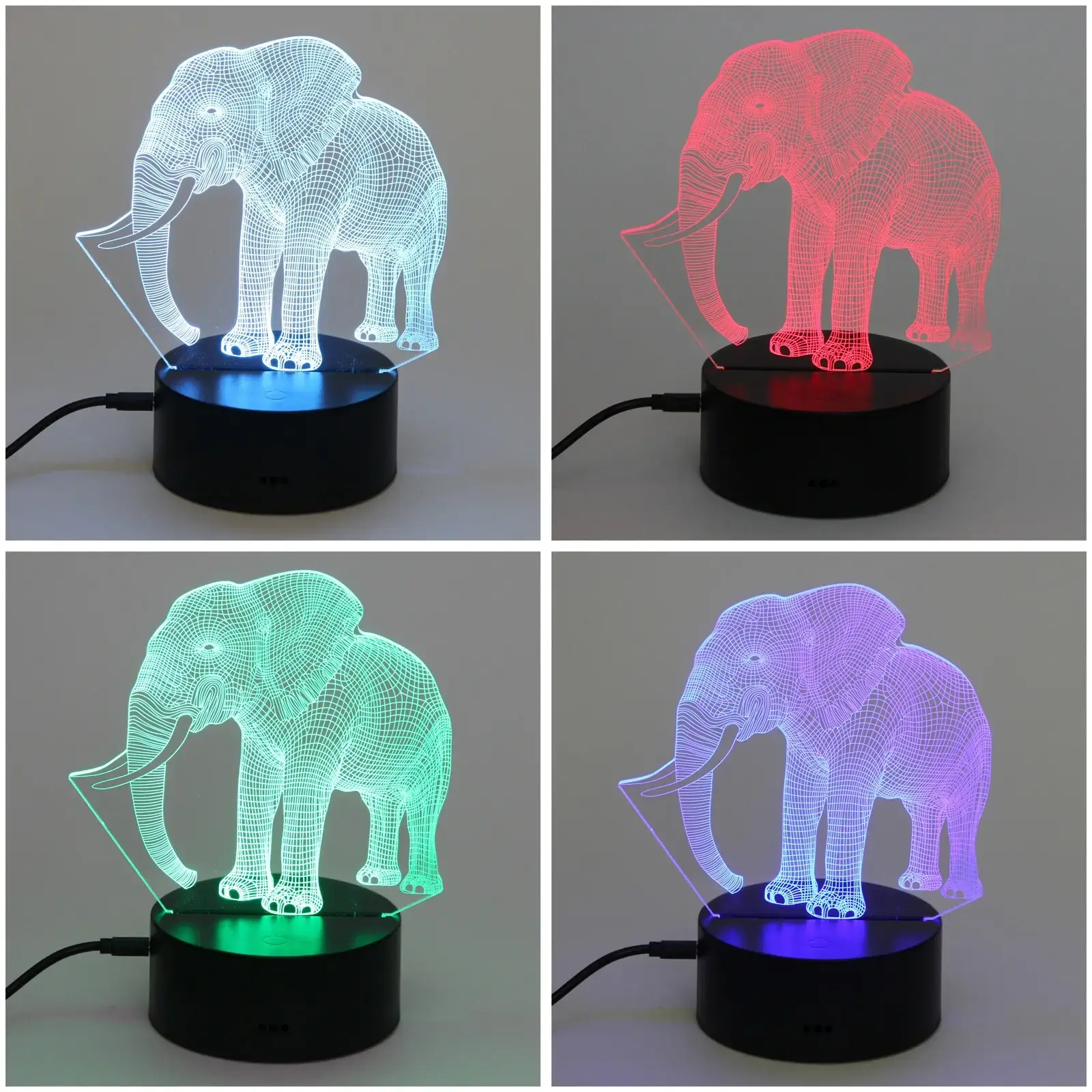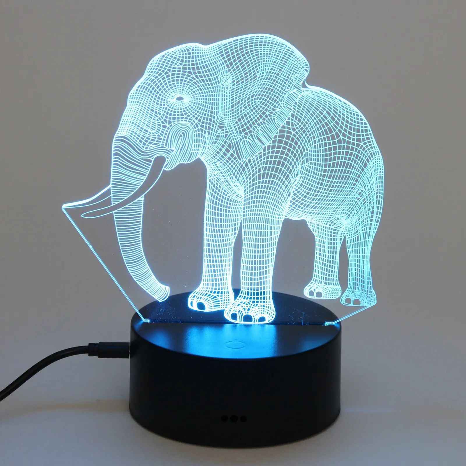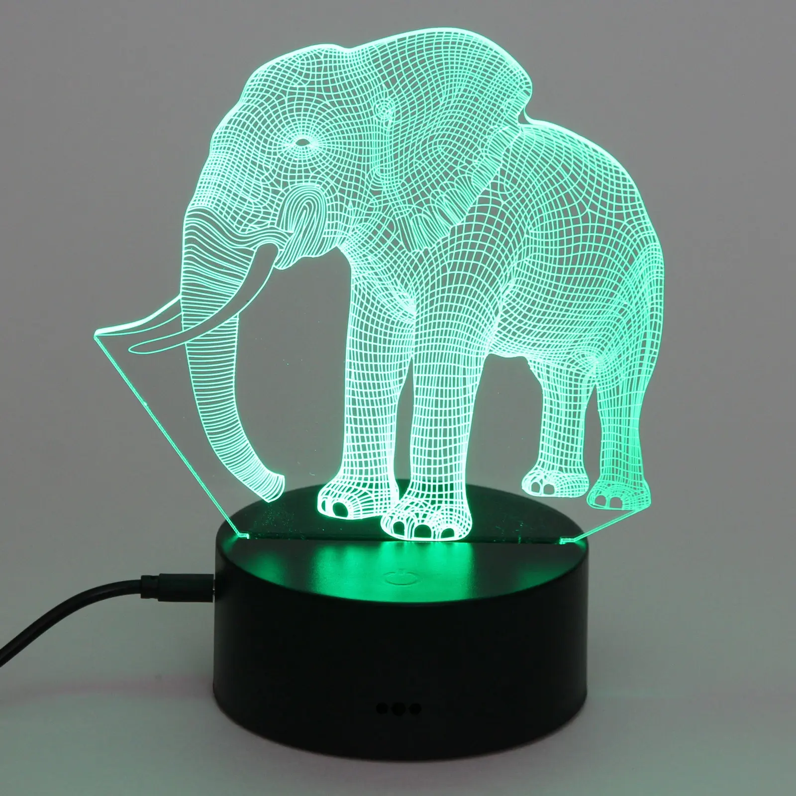 Светильник имеет размеры, которые делают его идеальным для настольного использования. Его акриловая панель с 3D-изображением слона создает эффект объемного изображения, что делает его не только функциональным, но и привлекательным элементом декора. Подставка выполнена из прочного пластика, что обеспечивает стабильность и долговечность. Этот светильник станет отличным подарком для друзей и близких, а также прекрасным дополнением к вашему интерьеру.