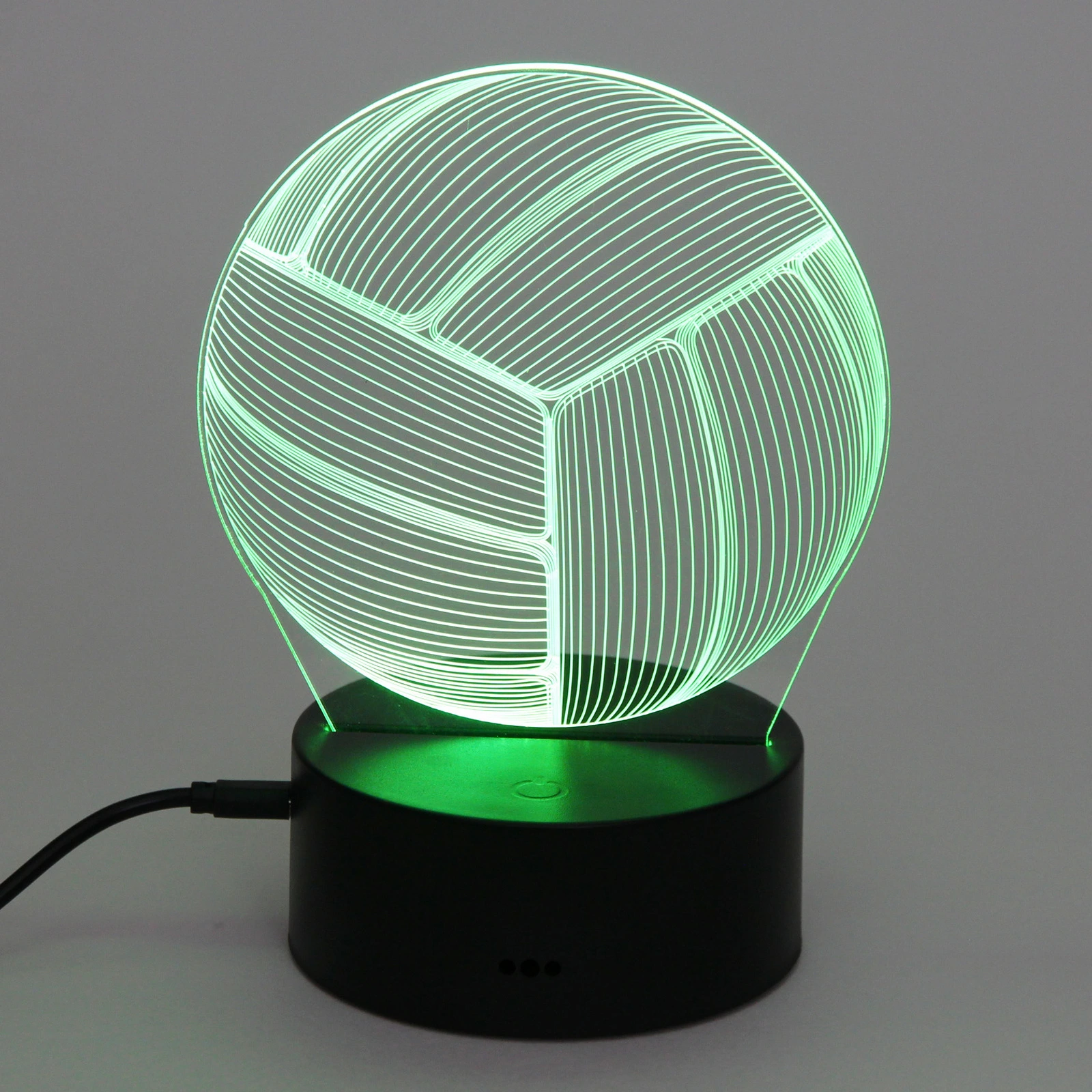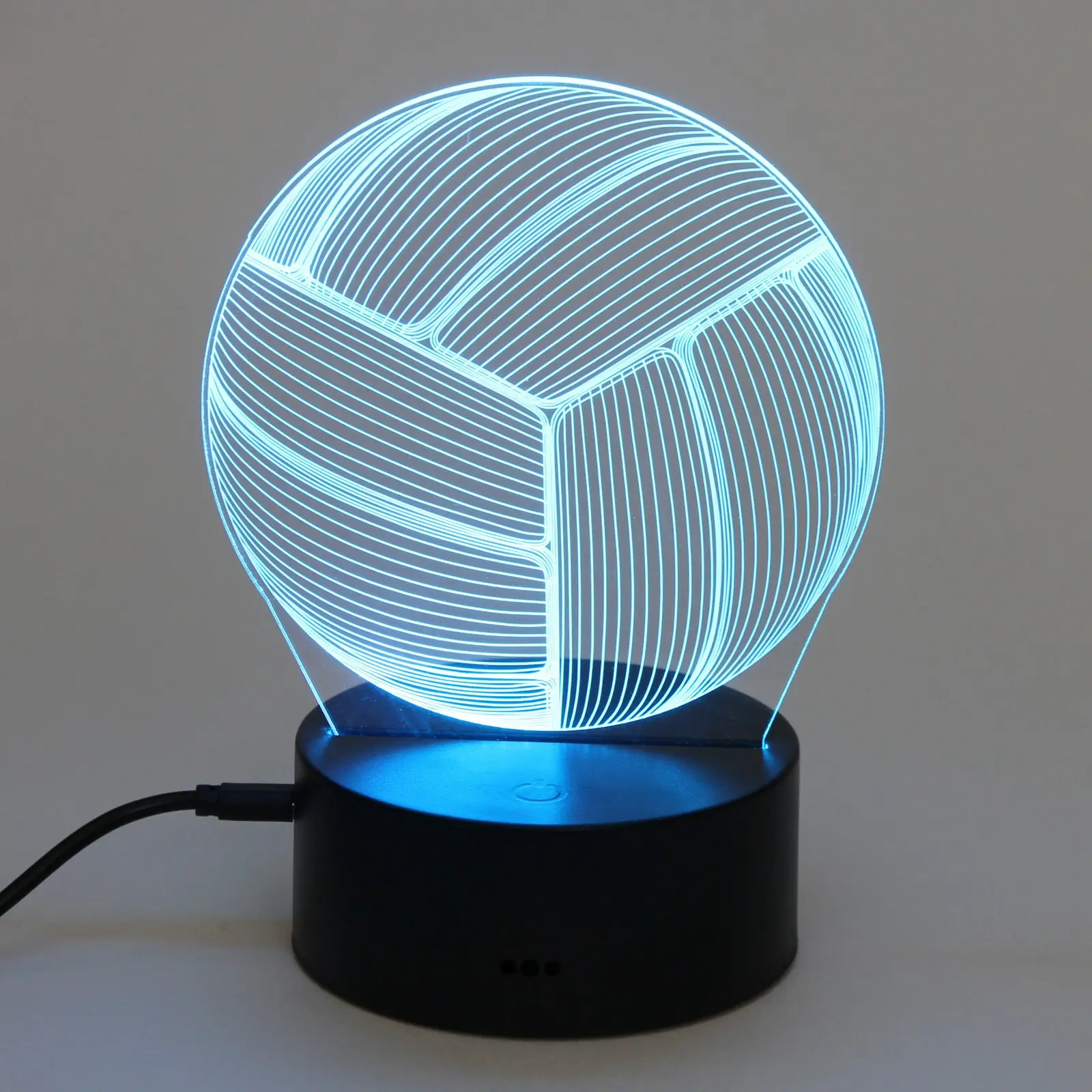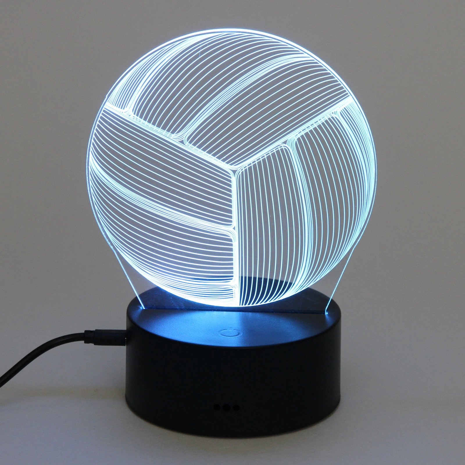 Светильник выполнен из качественного пластика, что обеспечивает его долговечность. Черная подставка придает ему стильный вид и надежность. Размеры светильника идеально подходят для настольного использования, а его современный дизайн делает его отличным подарком для любителей волейбола и спорта.
