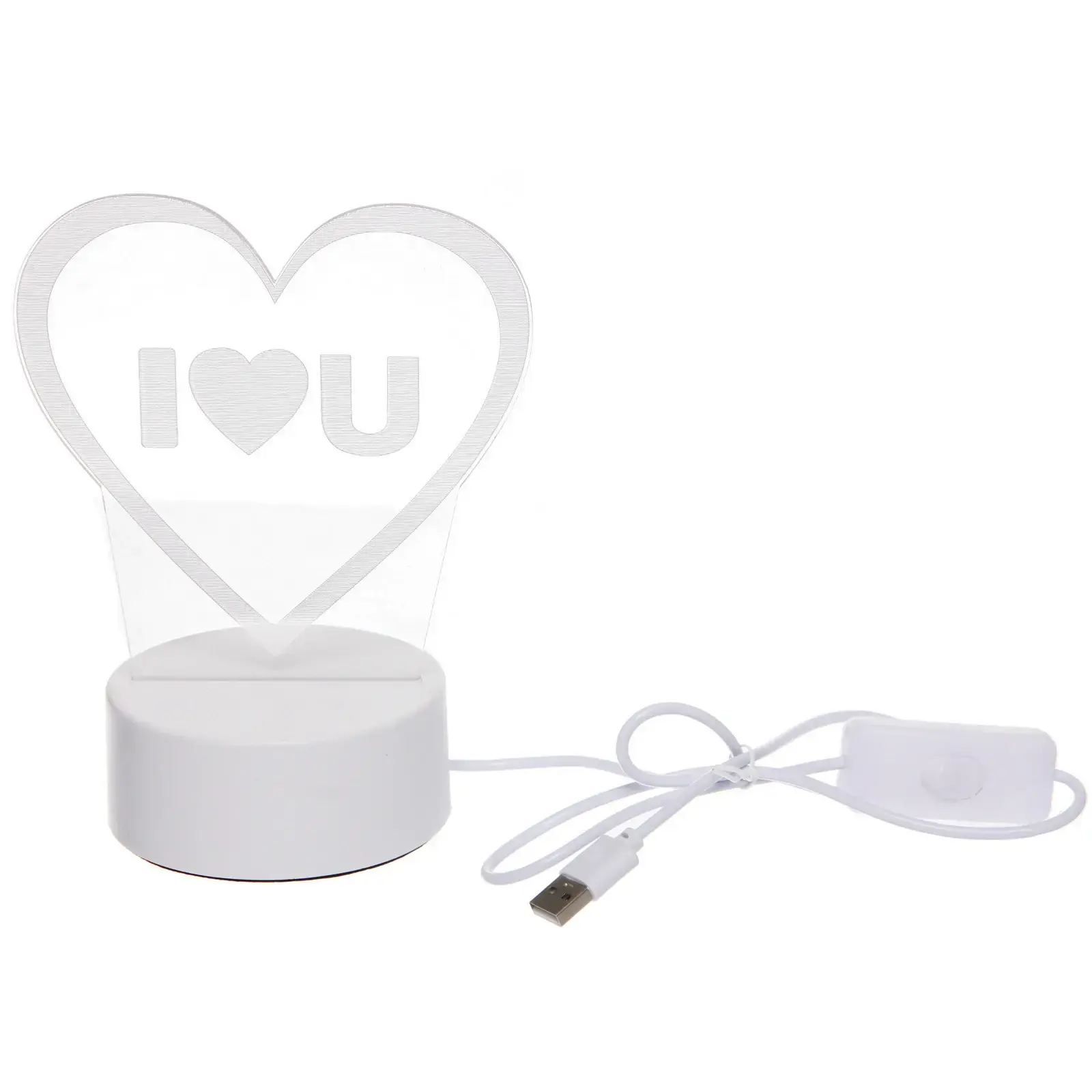 Светильник имеет круглое основание, выполненное из белого пластика, и прозрачный акриловый элемент в форме сердца. Его размеры делают его подходящим для настольного использования, а стильный дизайн привлекает внимание. Не упустите возможность добавить этот замечательный светильник в свою коллекцию или подарить его близким!