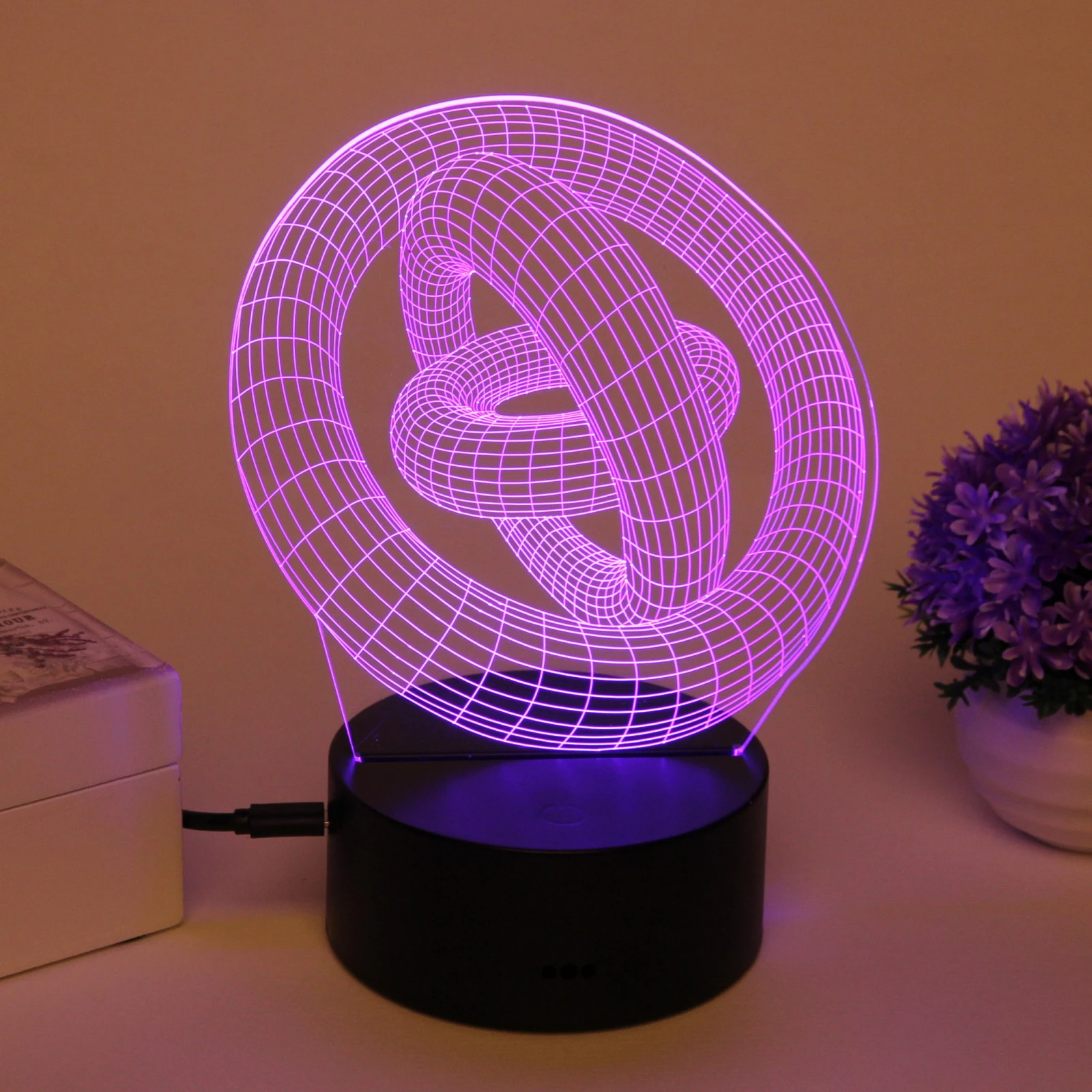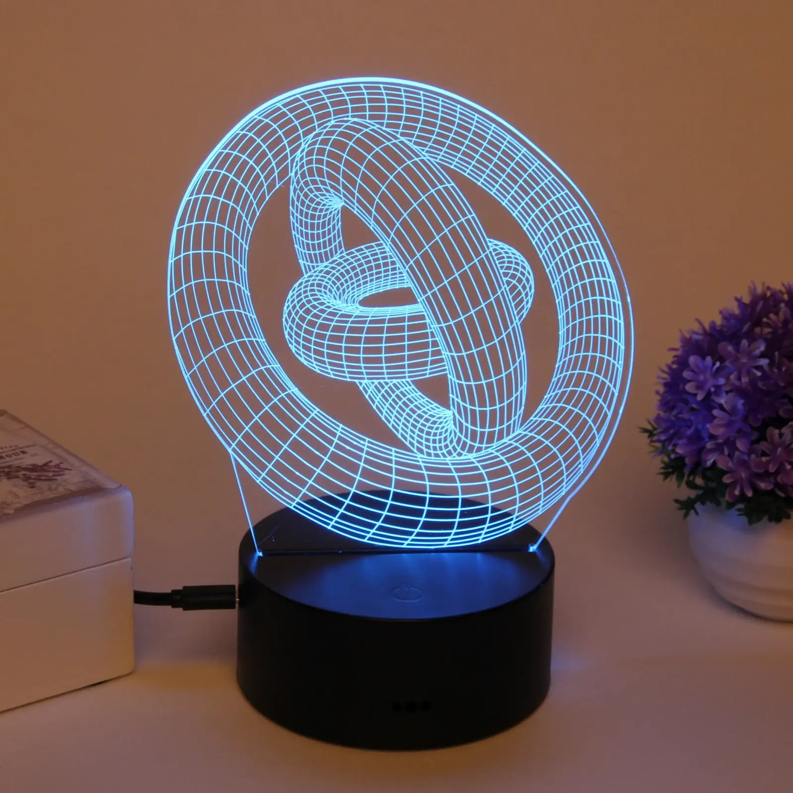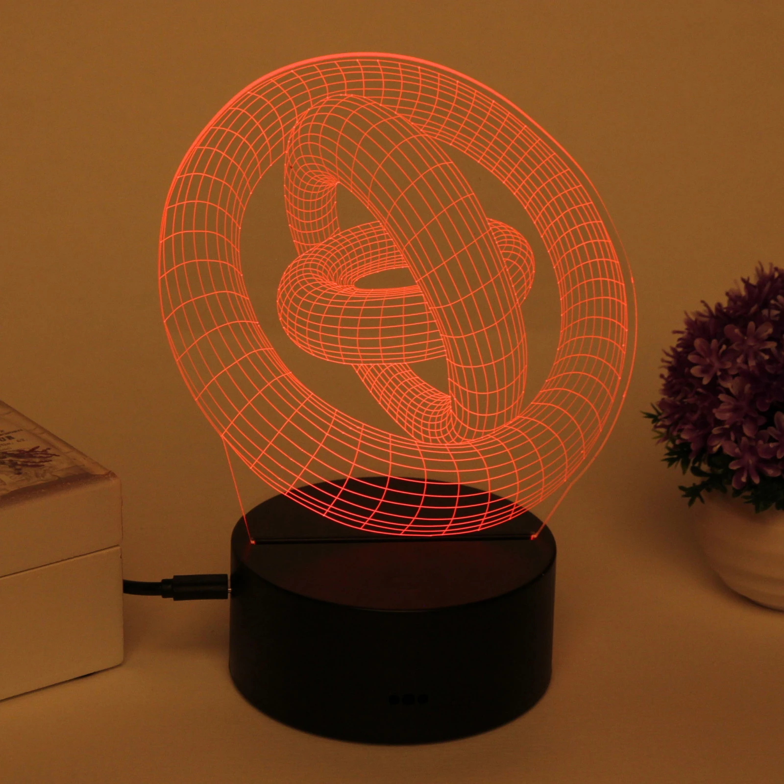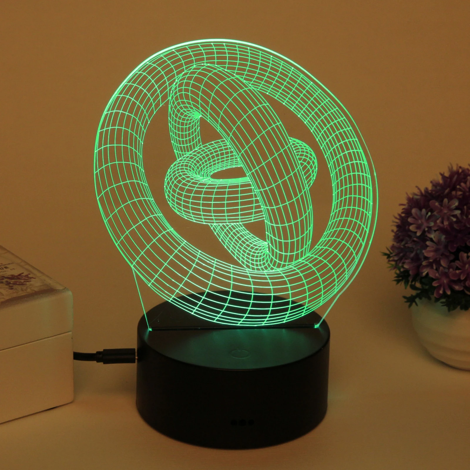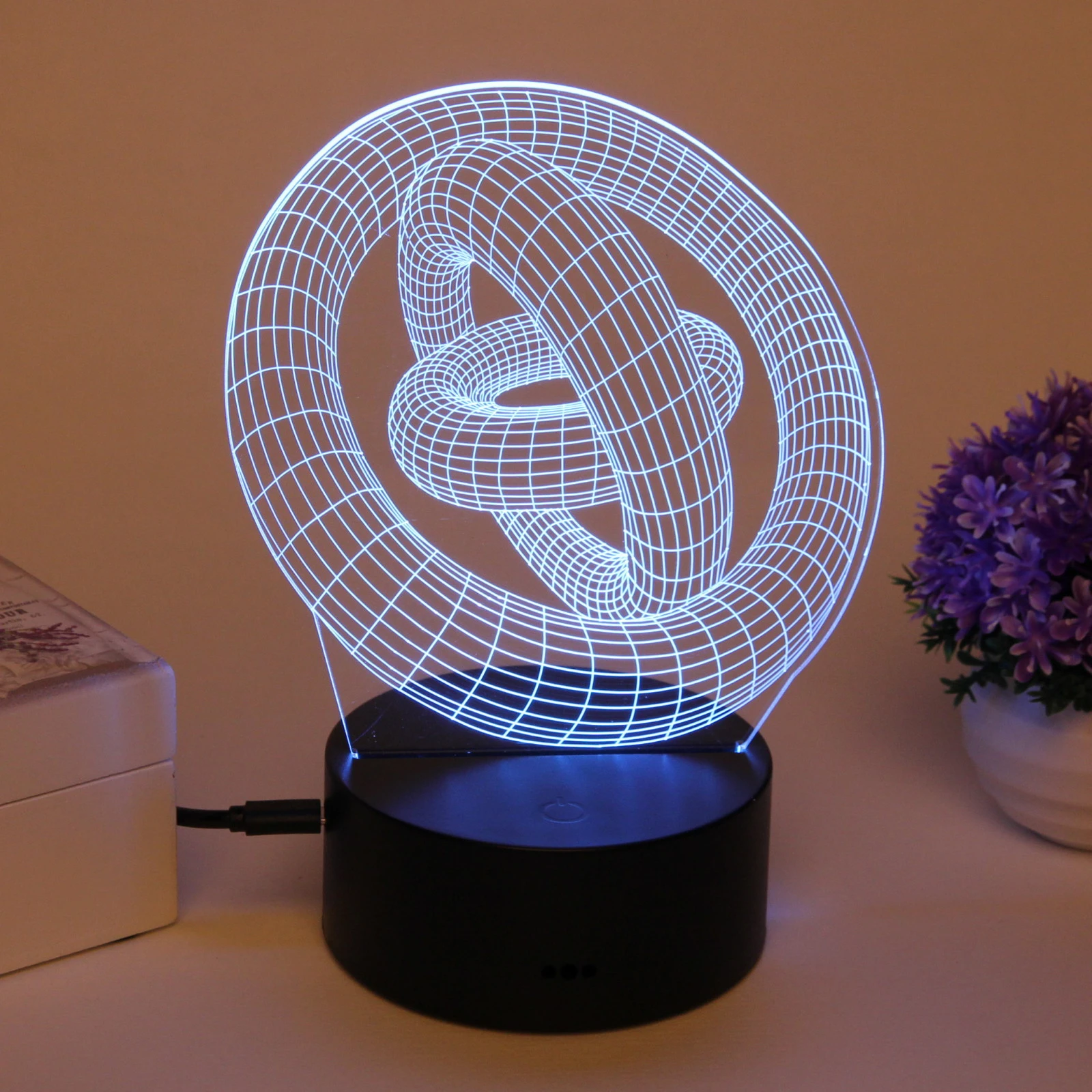 Ночник светодиодный 3D «цепи и кольца», пластиковая подставка, USB-питание, декор интерьера