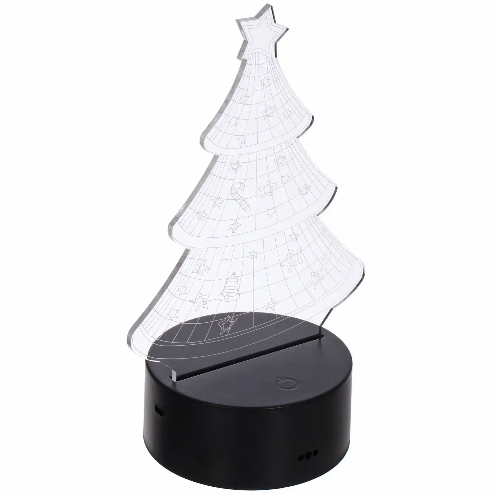 Светильник выполнен из прозрачного пластика, что позволяет ему гармонично вписаться в любой интерьер. Его размеры компактны, что делает его идеальным для настольного использования. Ночник украшен элементами, имитирующими рождественские украшения, что добавляет ему праздничного шарма. Не упустите возможность сделать ваш дом более уютным и красивым с помощью этого замечательного светильника!