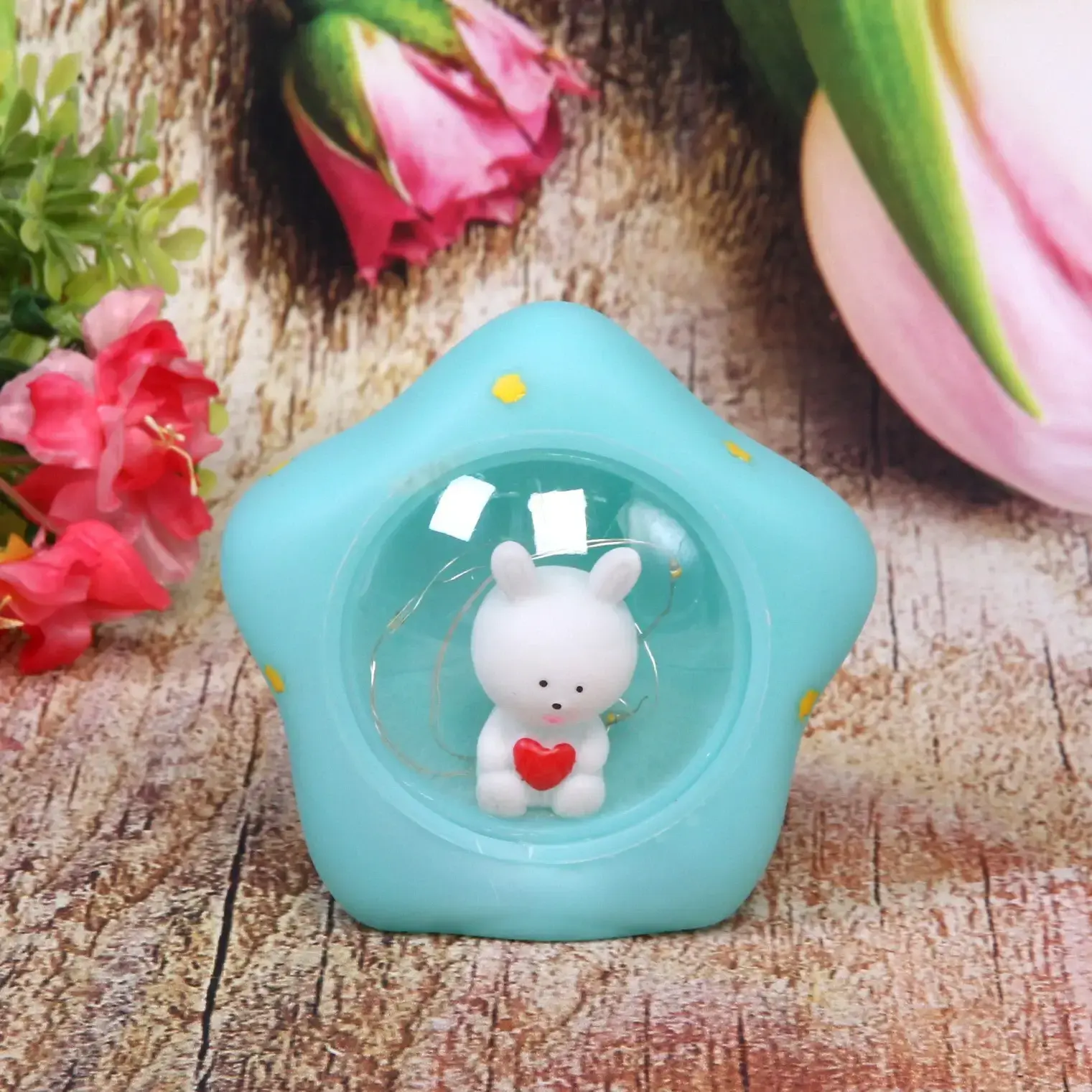 Ночник в форме звезды с очаровательным зайчиком внутри создает уютную атмосферу в детской комнате. Мягкое свечение помогает ребенку чувствовать себя в безопасности и засыпать без страха темноты.