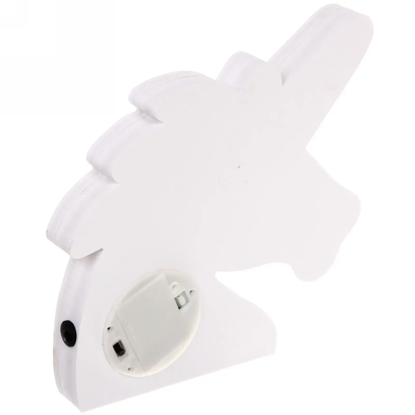 Корпус из ударопрочного пластика устойчив к повреждениям. Четкая форма с рельефными деталями (рог, грива) создает выразительный силуэт при выключенном свете. USB-разъем позволяет при необходимости подключить питание от сети. Белый цвет гармонично сочетается с любым интерьером.