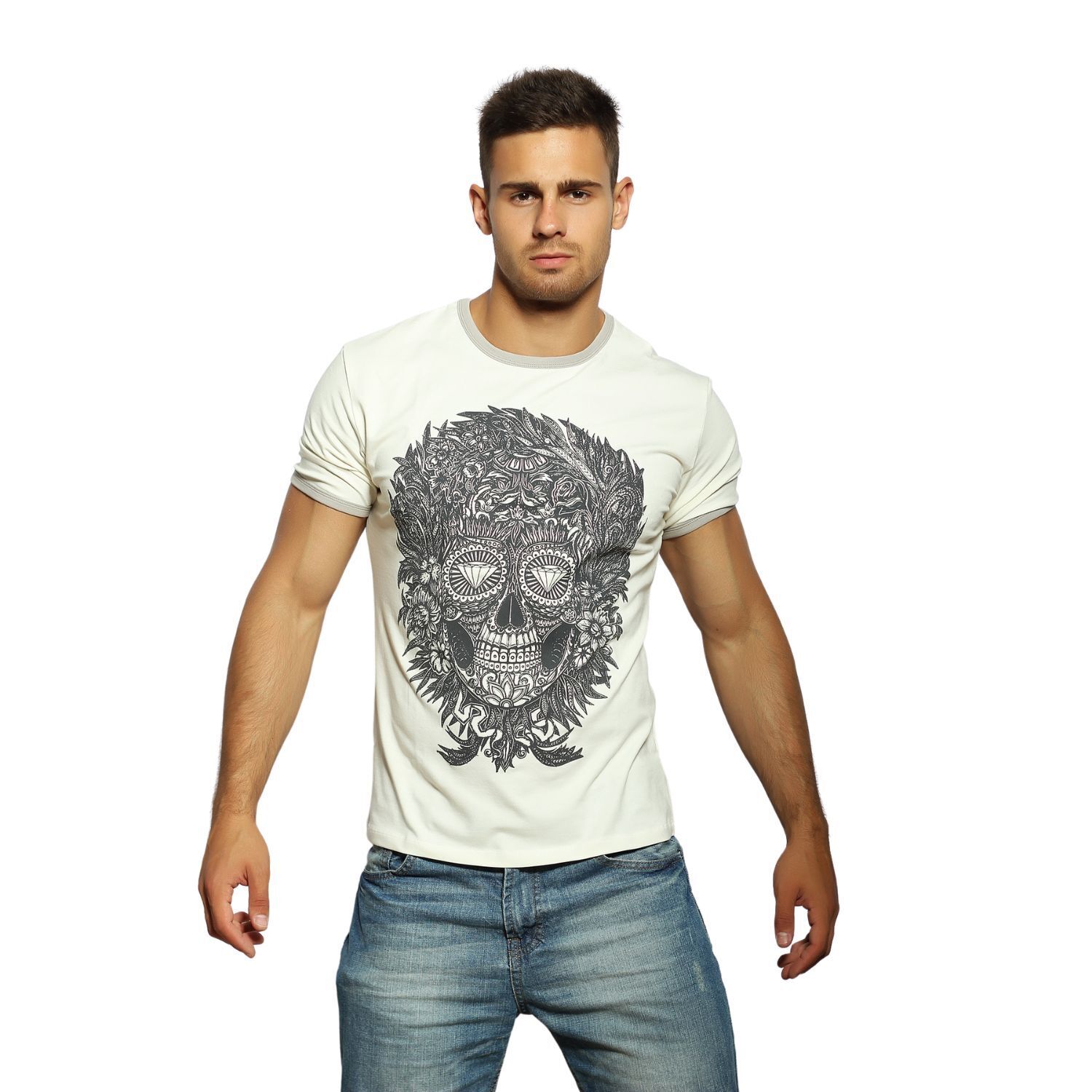 Стильная светло-бежевый футболка с принтом черепа