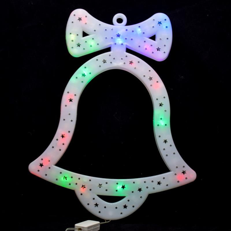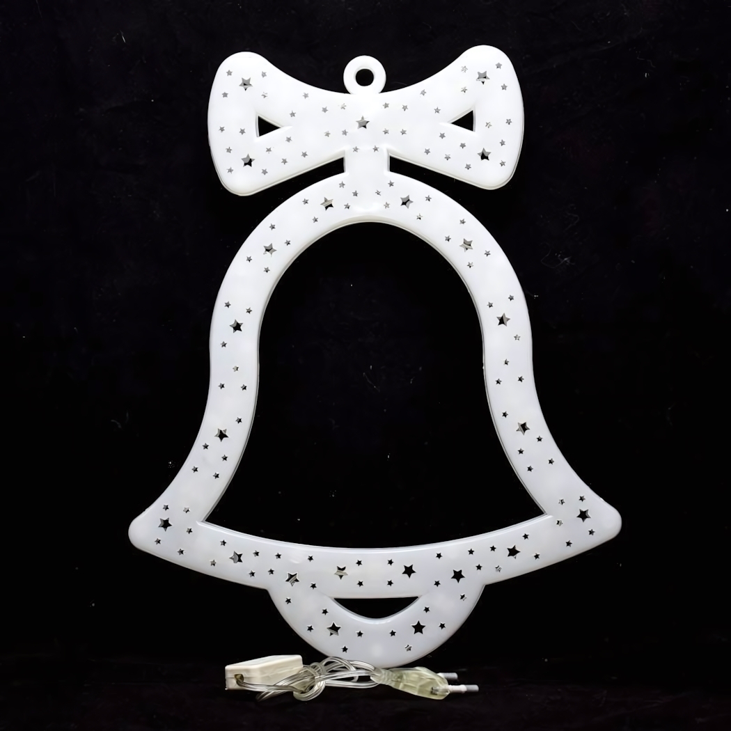 Световое панно колокольчик, украсьте дом к празднику, 20LED, 30х23см, белый пластик, с кольцом