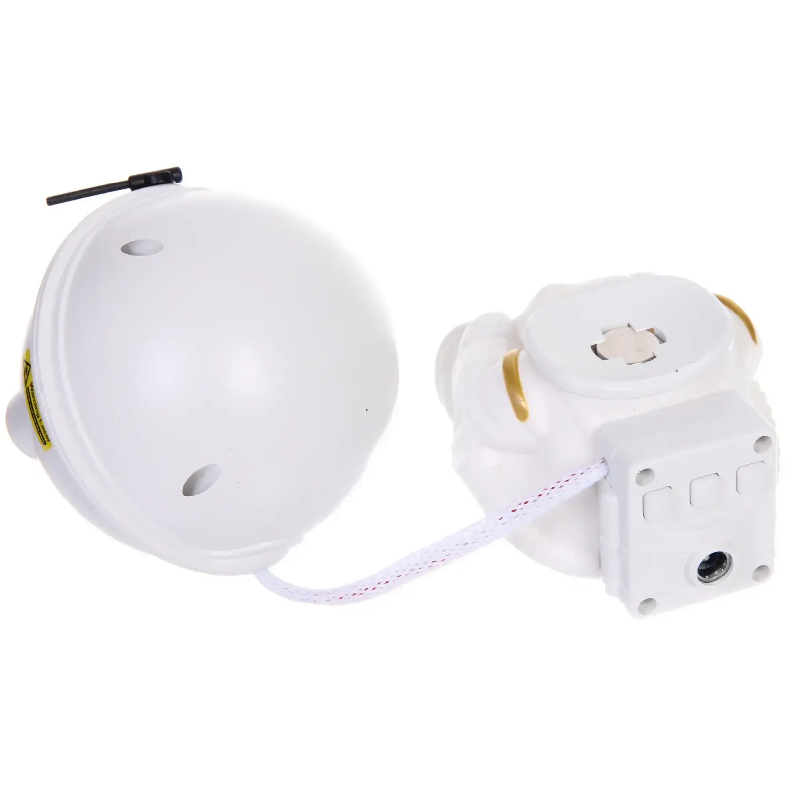 Изготовленный из качественных материалов — металла и пластика, прибор отличается надежностью и долговечностью. Его стильный дизайн в форме астронавта не только функционален, но и станет оригинальным элементом декора. Не упустите возможность преобразить ваше пространство с помощью светового прибора Лазер «Космос»!