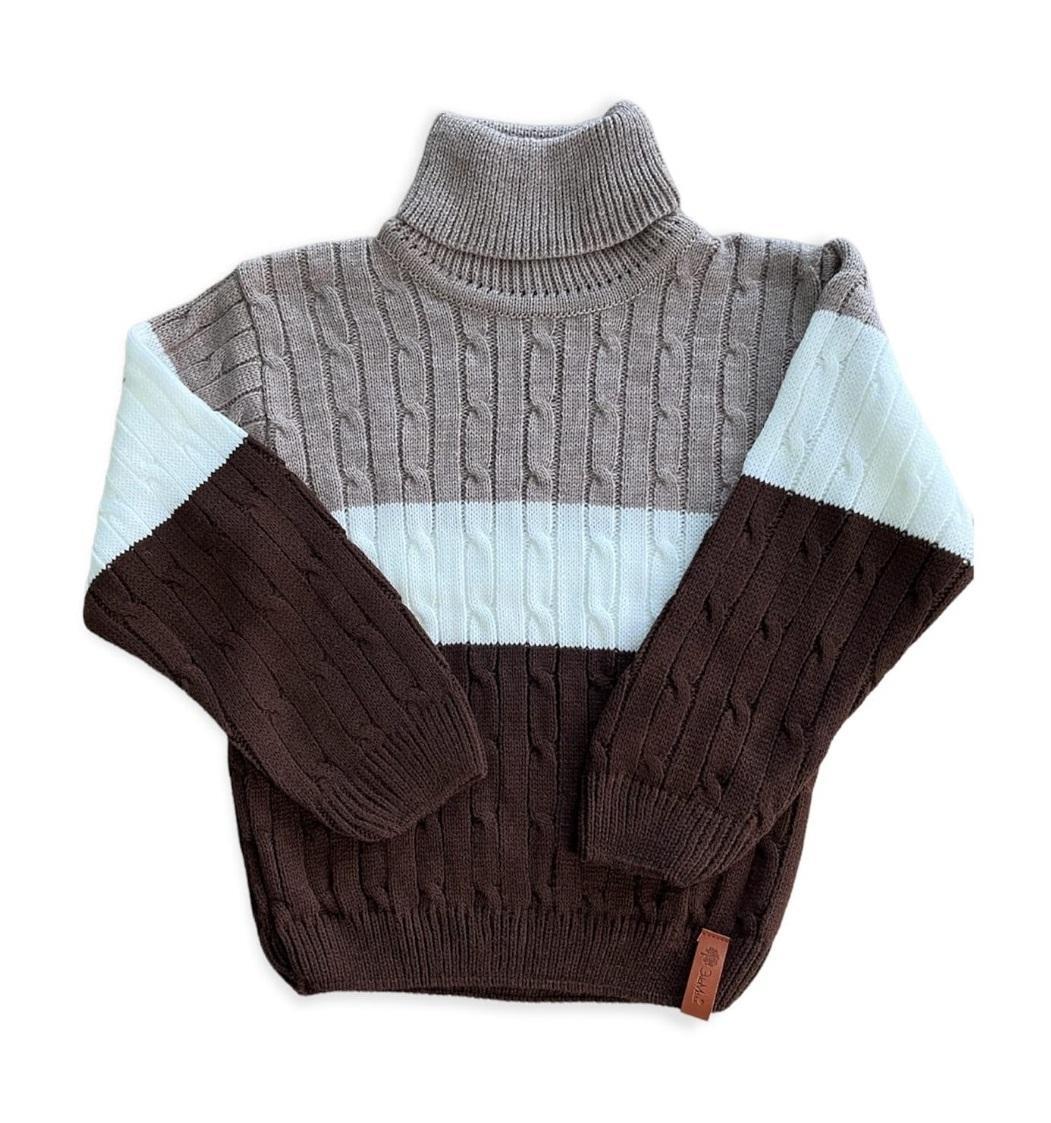 Свитер детский «Косики полосатик», мягкий, комфортный, размер 104-110, коричневый/бежевый, 50% шерсть/50% акрил