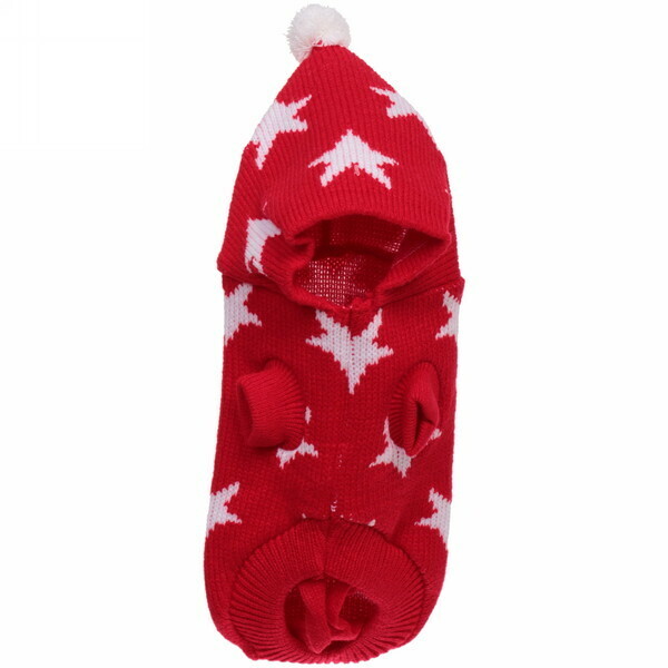 Свитер предназначен для собак среднего размера, подходит для активных прогулок и повседневного использования. Он легко надевается и снимается благодаря удобному дизайну. Капюшон с помпоном добавляет оригинальности и защищает ушки вашего питомца от ветра.