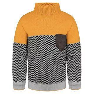 Благодаря продуманному дизайну и элегантной расцветке в оттенках горчицы, серого и черного, этот свитер станет идеальным дополнением к гардеробу вашего малыша на каждый день.