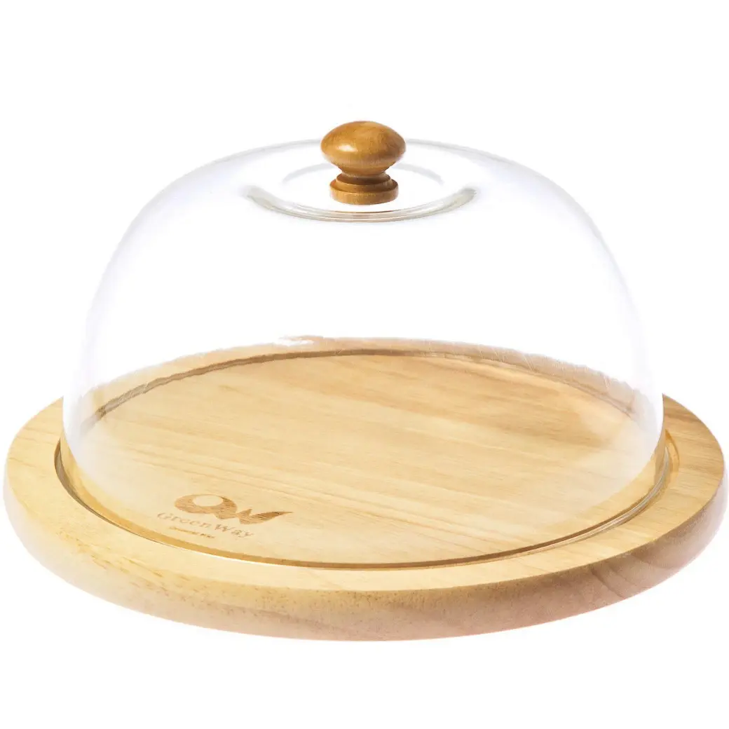 Натуральная деревянная основа диаметром 20 см дополнена прозрачной пластиковой крышкой-куполом. Гладкая поверхность приятна на ощупь, а выразительная текстура дерева в бежево-молочных оттенках создает особую атмосферу домашнего уюта.