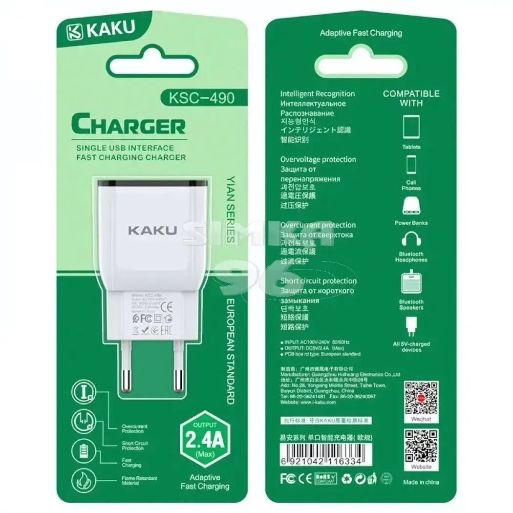 Зарядное устройство KAKU KSC-490 — это идеальный выбор для тех, кто ценит комфорт и высокое качество. С максимальным выходом 2.4А, оно обеспечивает быструю и эффективную зарядку ваших устройств. Благодаря адаптивной технологии быстрой зарядки, вы сможете сократить время ожидания и всегда оставаться на связи.
