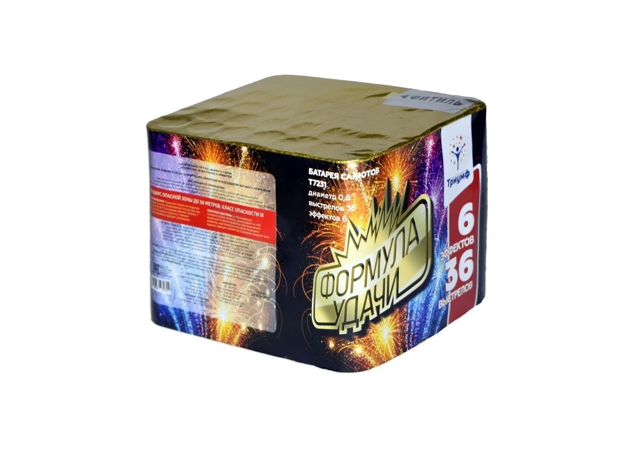 Погрузитесь в атмосферу волшебства и радости с салютом «Формула удачи». Этот пиротехнический продукт подарит вам незабываемые эмоции и яркие впечатления, создавая великолепное зрелище на любом празднике. Салют состоит из 36 выстрелов, каждый из которых наполнен эффектами, которые удивят и порадуют ваших гостей.
