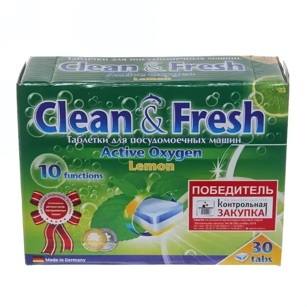 С таблетками для посудомойки 'CLEAN&FRESH' каждая мойка станет проще и эффективнее. Благодаря уникальной формуле с активным кислородом и приятному лимонному аромату, ваши блюда будут не только идеально чистыми, но и свежими.