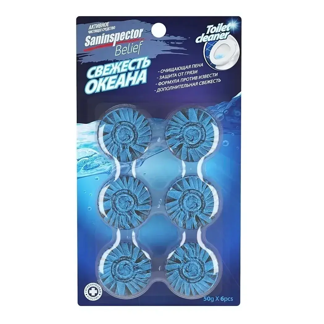 Набор из 6 картриджей с очищающими таблетками San Inspector BELIEF — ваш надежный помощник в борьбе с загрязнениями и неприятными запахами. Инновационная формула с активной пеной обеспечивает комплексный уход за сливным бачком, сохраняя безупречную чистоту до 30 дней.