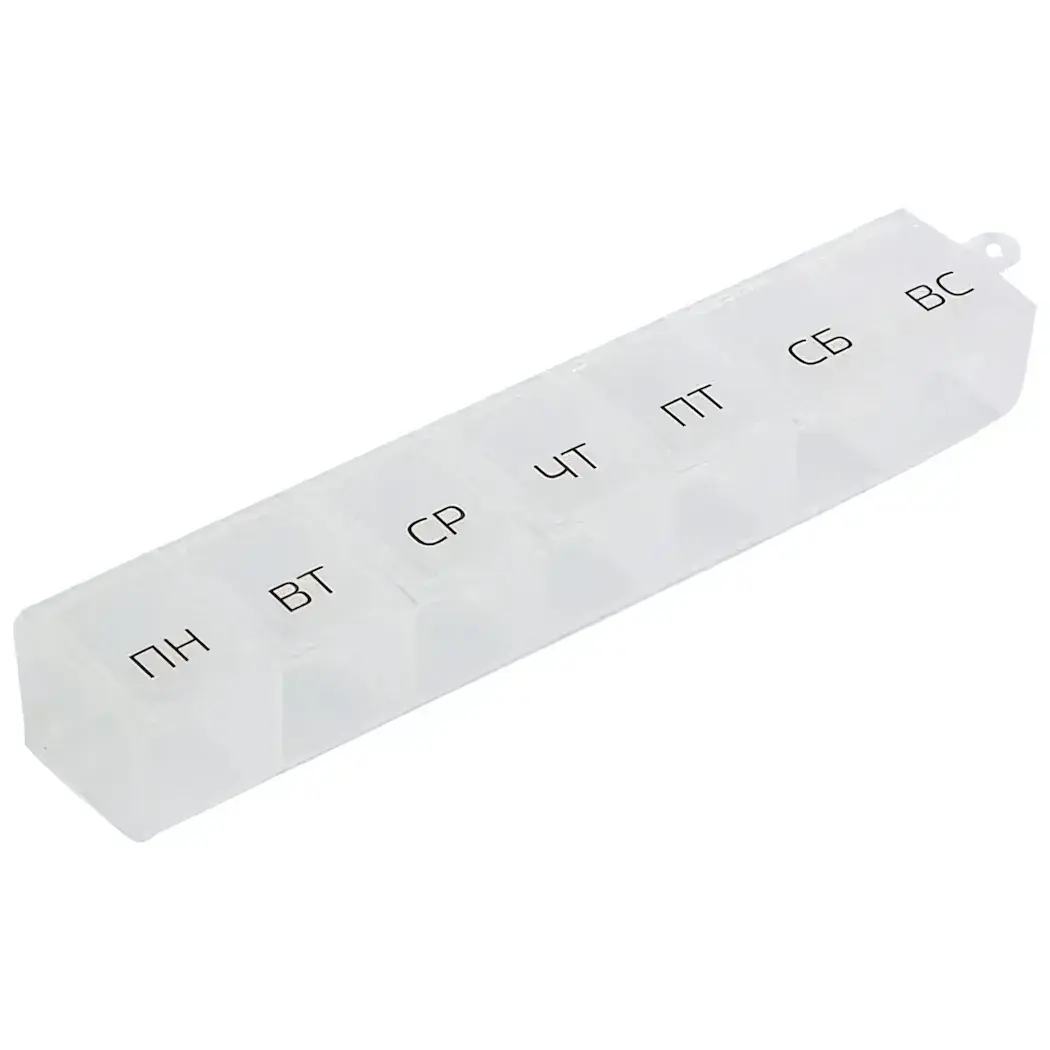 Таблетница недельная с 7 секциями, прозрачный пластик, органайзер для лекарств и витаминов